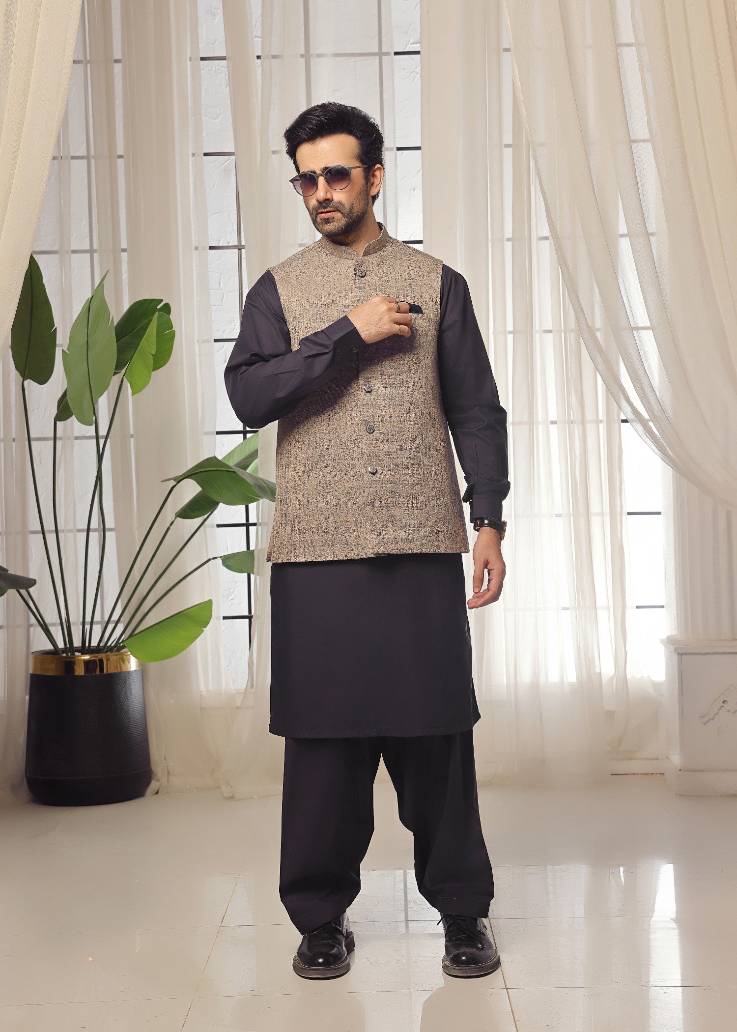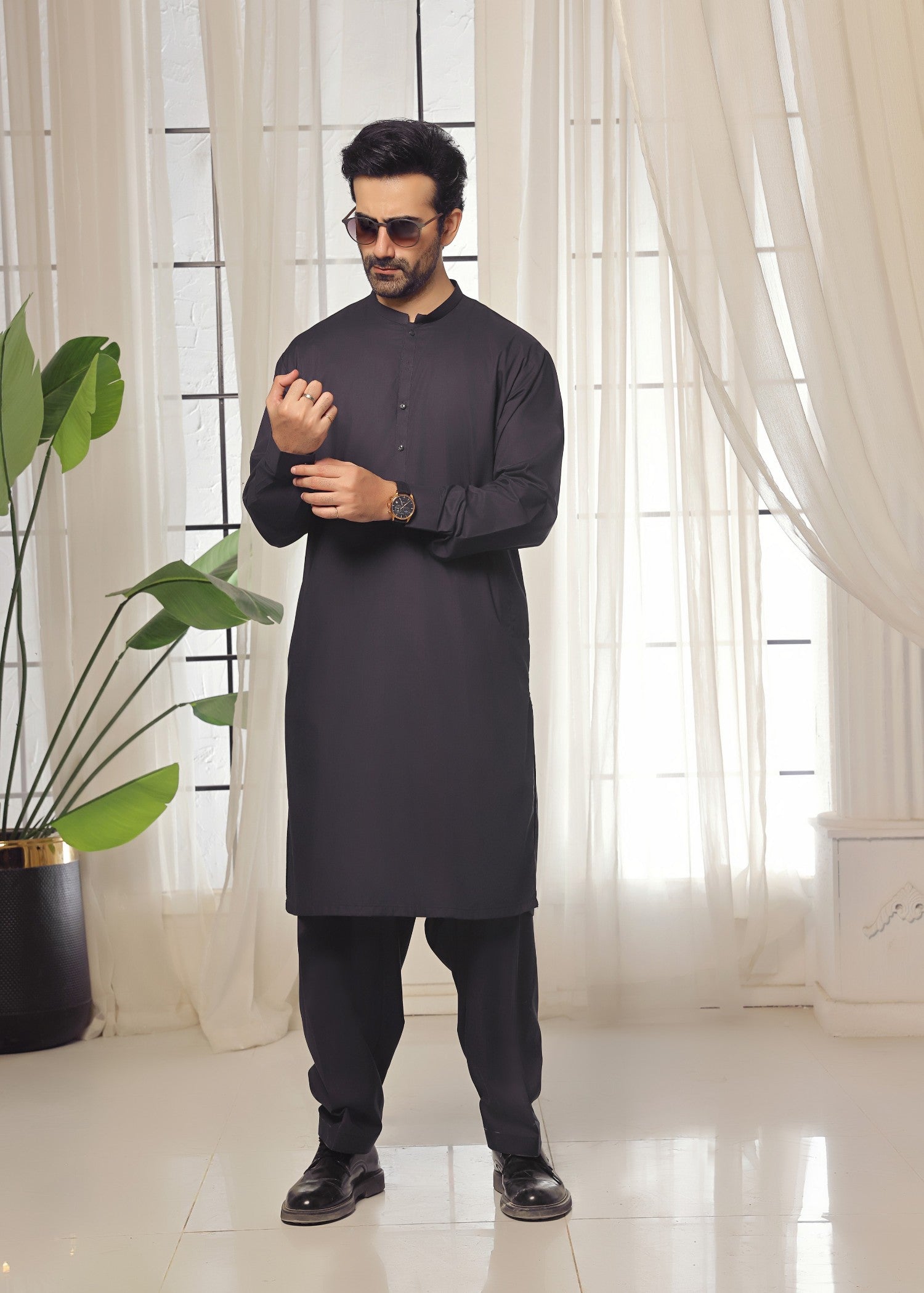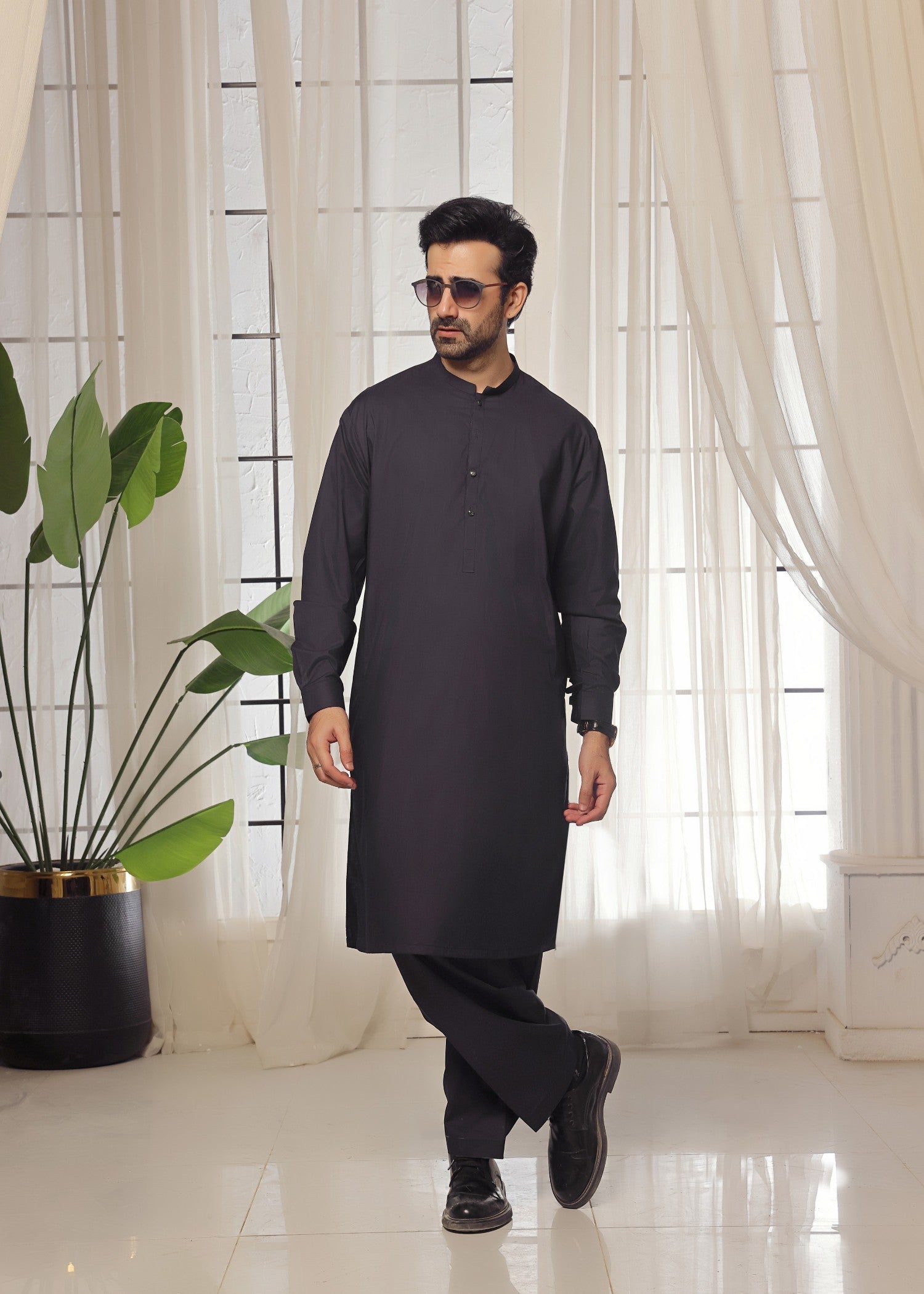 Gender:Â Menn Category:Â Clothingn Outfit Type:Â Easternn Sub-Category:Â Kurta Setn Bottom Style:Â Straight Trousern Color Type:Â Blackn Fabric:Â Masurin Number of Pieces:Â 2 Piece – Top & Bottomn