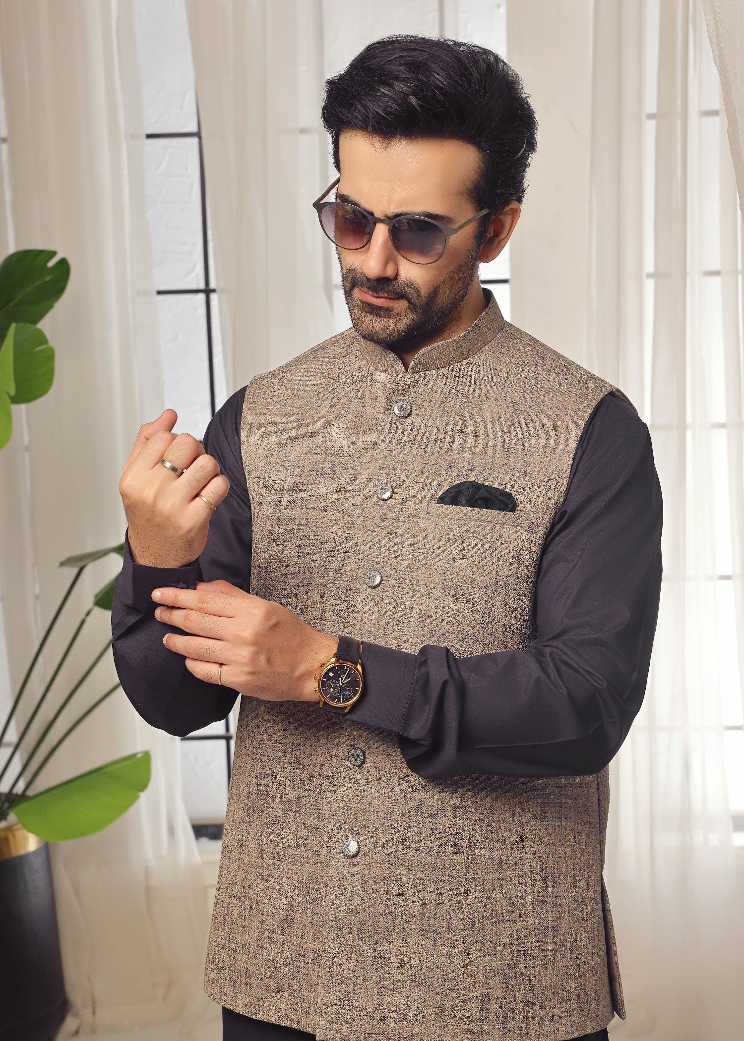 Gender:Â Menn Category:Â Clothingn Outfit Type:Â Easternn Sub-Category:Â Waistcoatn Color Type:Â Baby Pinkn Fabric:Â Raw Silkn Number of Pieces:Â 1 Piece – Outerwearn Product Type:Â Festive/Party Wearn Season:Â All