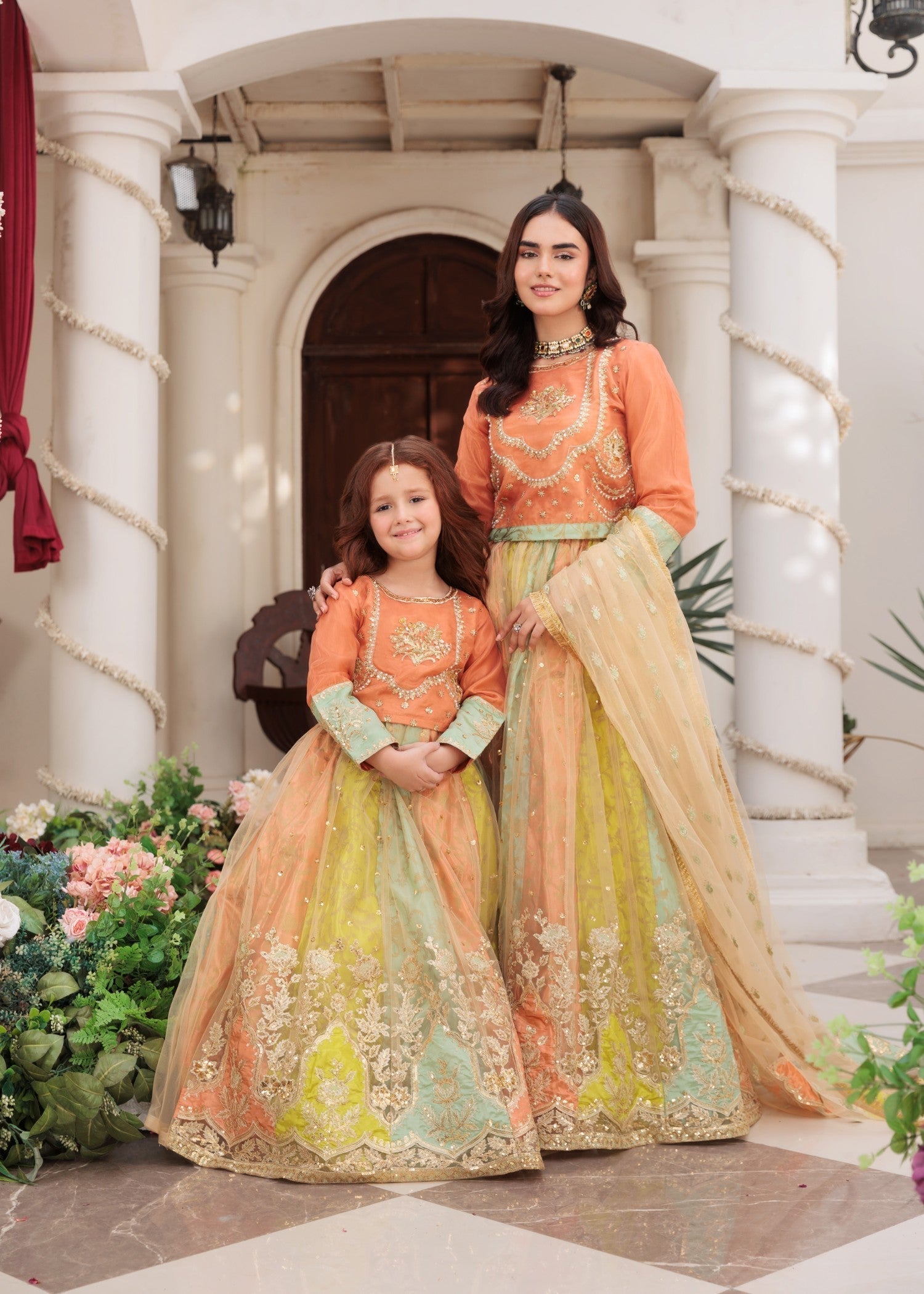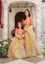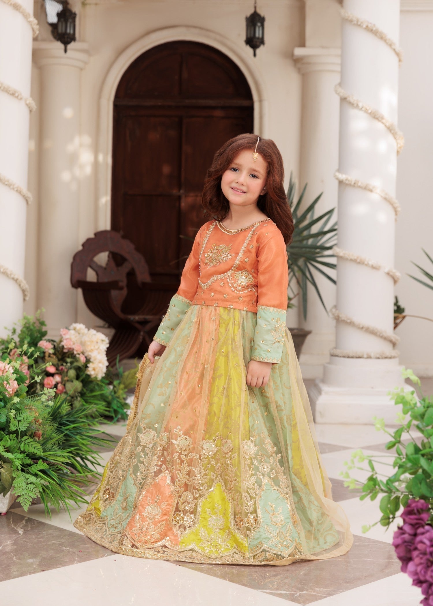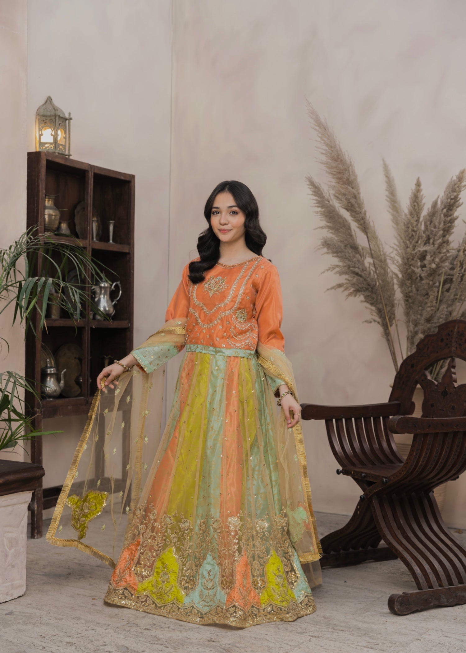 Additional Description: Description: n-Sequins, tilla and thread embroidered net kurti with tefta silk inner lining further enhanced with hand work.n-Sequins, tilla and thread embroidered lehenga with printed tefta silk inner lining and cancan border.n-Embroidered net dupatta, four sides embroidered patches and lace.nnnThis article includes Kurti, Dupatta and Lehnga.nn