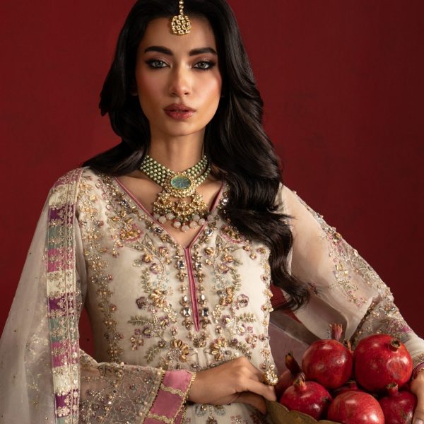 Gender:Â Womenn Category:Â Clothingn Outfit Type:Â Eastern Ready to wearn Sub-Category:Â Ghararan Bottom Style:Â Flared Ghararan Color Type:Â Whiten Dupatta Fabrics:Â Organzan Number of Pieces:Â 3 Piece –