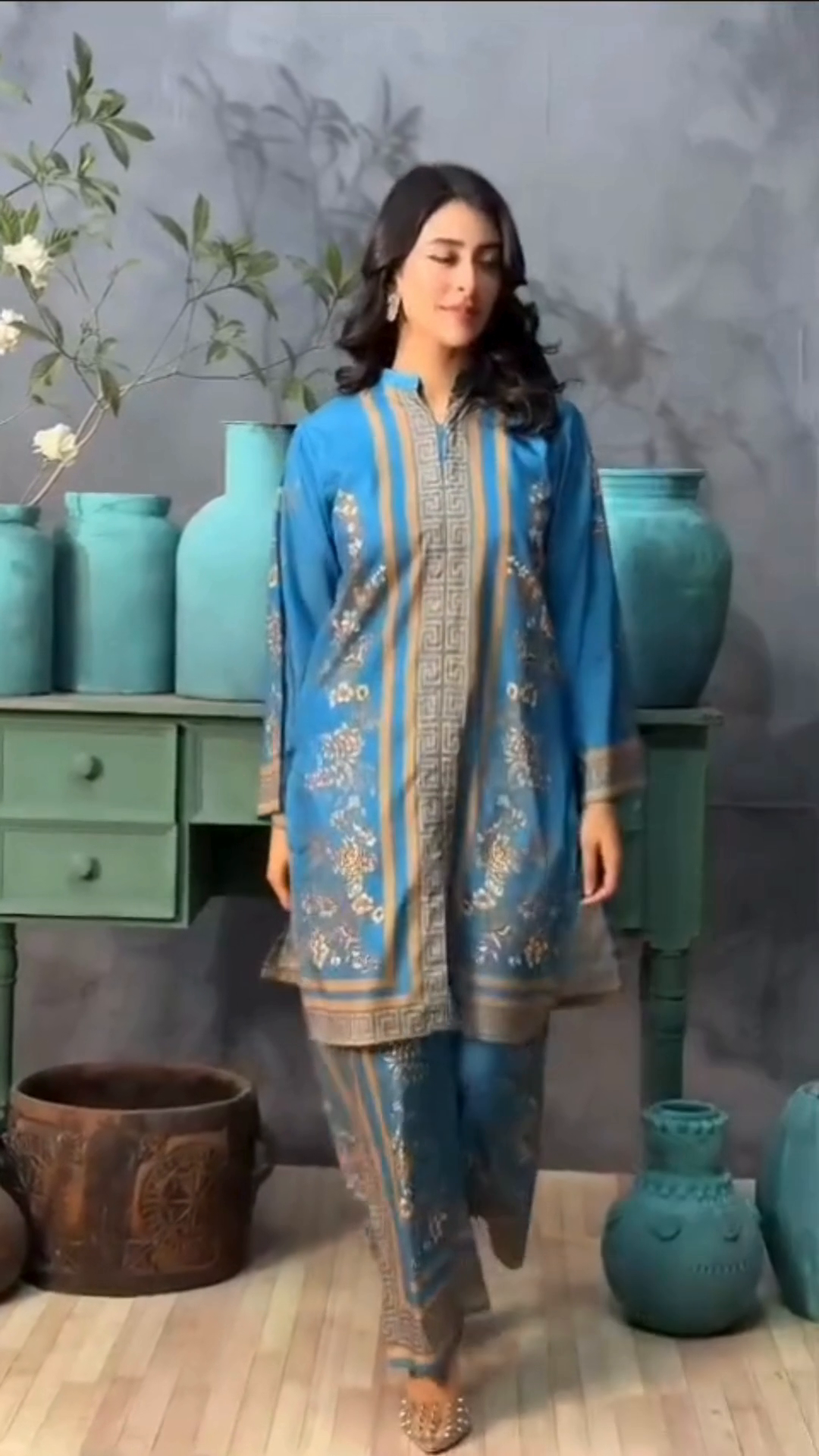 Gender:Â Womenn Category:Â Clothingn Outfit Type:Â Eastern Ready to wearn Sub-Category:Â Co Ord Setsn Bottom Style:Â Straight Trousern Color Type:Â Powder Bluen Lining Attached:Â As shown in