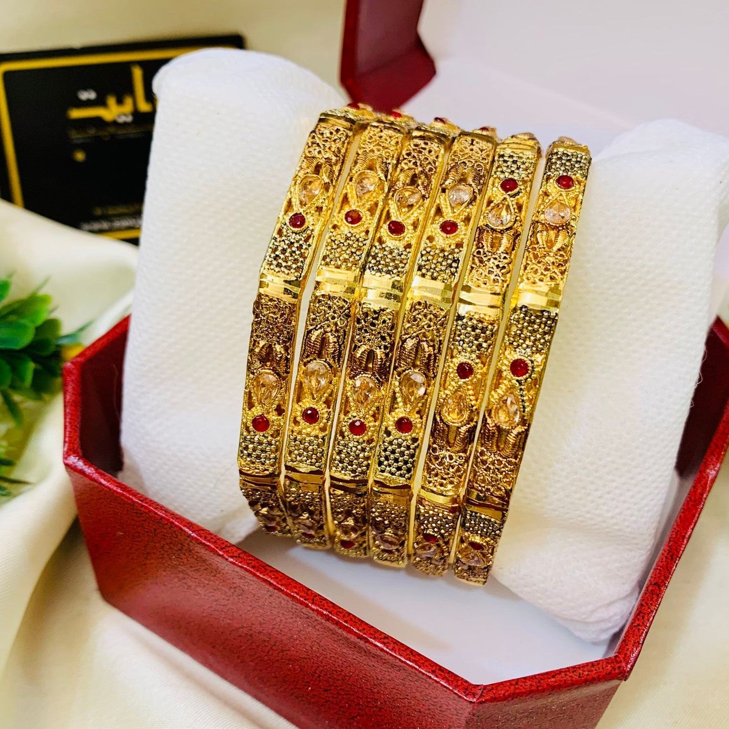 Additional Description:Â Rawayat Bangles-116 Set of 6 BanglesnnSizes 2.4(2),2.6 (Sawa 2),2.8 (Dhai),2.10 (Pony 3)nnMaterial:Cooper,Gold Plated,Anti Allergy JewellerynnWe provide 100% same & amp fine quality product as show in picture.nnJewellery Care Keep away from water perfume & other chemicals Clean it with dry and soft cloth.nnWe provide & very Good Quality JewellerynnAll items are packed in The Ecommerce Boxn