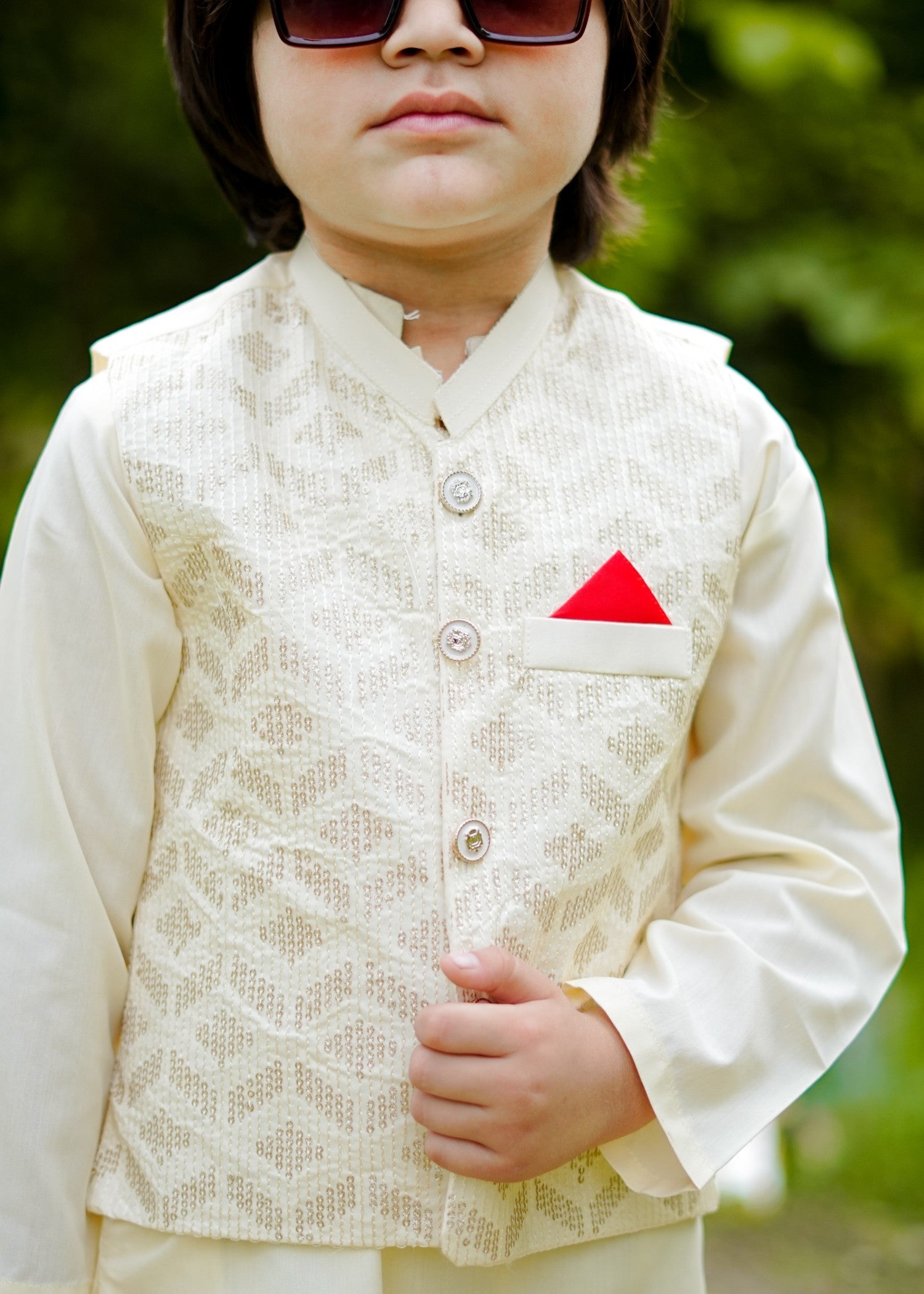 Additional Description:Â Waistcoat SuitnElevate your formal style with our elegant waistcoat suit. Crafted from high-quality [fabric], this three-piece ensemble includes:n- Color: Bavarian Creamn- Fabric: blended embroidered waistcoat and soft wash and wear shalwar kameezn- Size: 2-3 yrs to 12-13 yrs n- Style: FormalnnExperience the perfect blend of style, comfort, and sophistication with our waistcoat suit.n