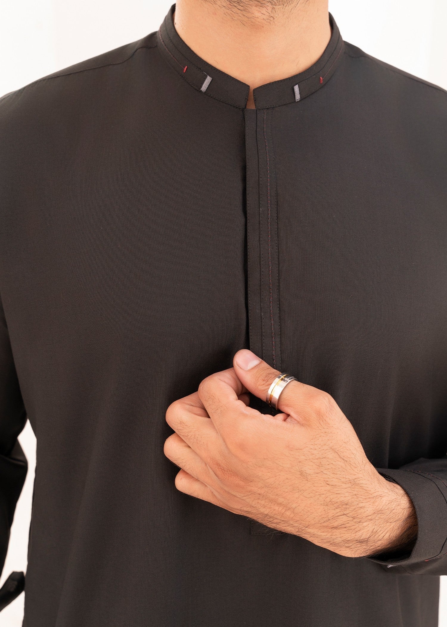 Gender:Â Menn Category:Â Clothingn Outfit Type:Â Easternn Sub-Category:Â Kurta Setn Bottom Style:Â Straight Trousern Color Type:Â Blackn Fabric:Â Masurin Number of Pieces:Â 2 Piece – Top & Bottomn