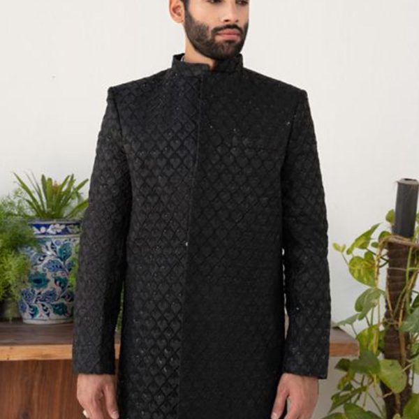 Black Embroidered Sequin Sherwani DD-02