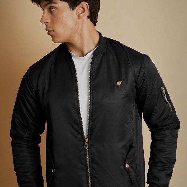 Black Bomber Jacket with Flap Pockets For Men