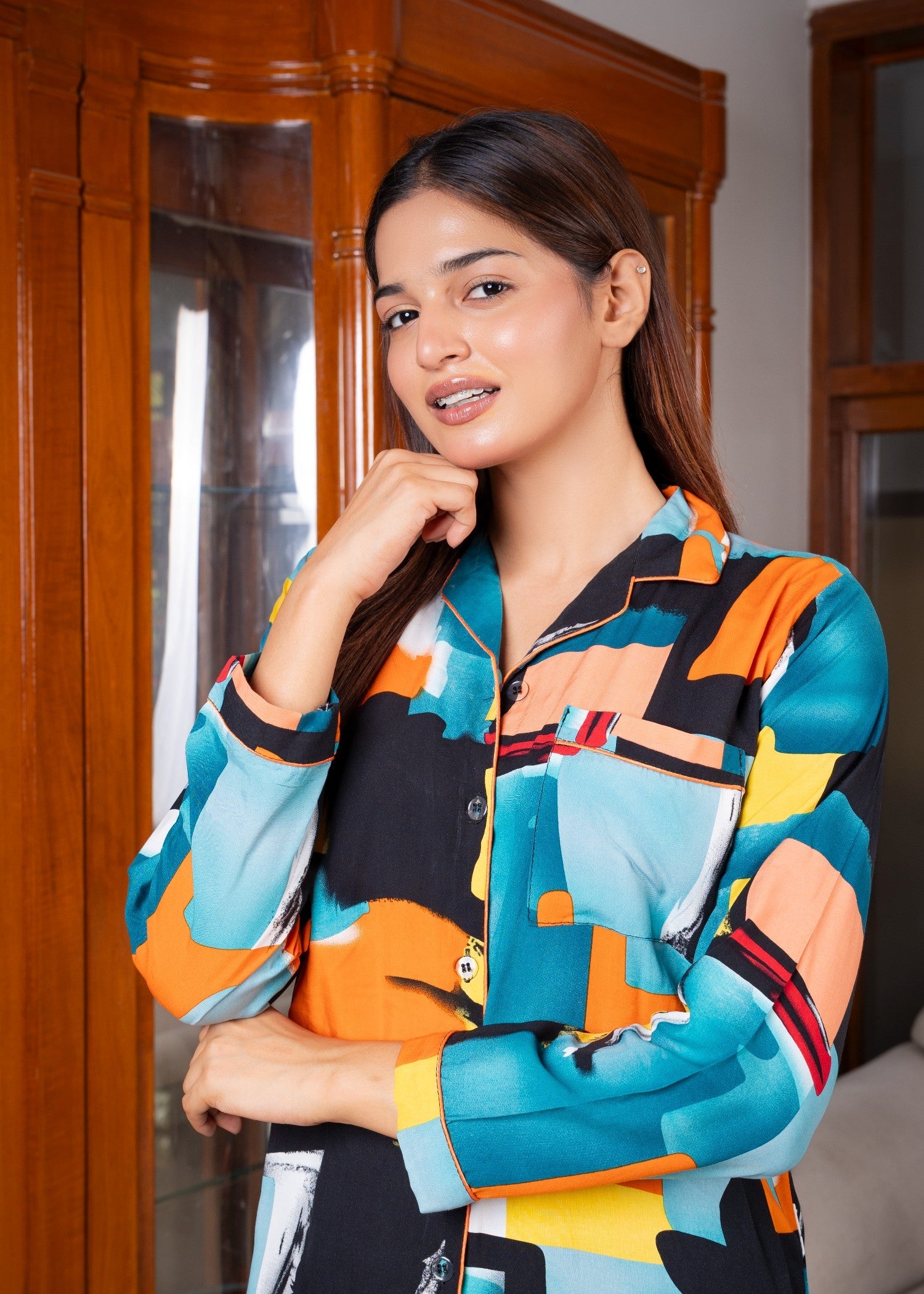 Additional Description:Â Relaxed FittingnIMPORTED LINEN FABRICnSoft feelnPocket in shirtnDurable & Long LastingnClassical TailoringnFabric Shrinks After WashnWe Suggest Buying One Size LargernHand Wash RecommendednMatching PajamanNightwear and semi casualnModel is wearing SMALL sizen