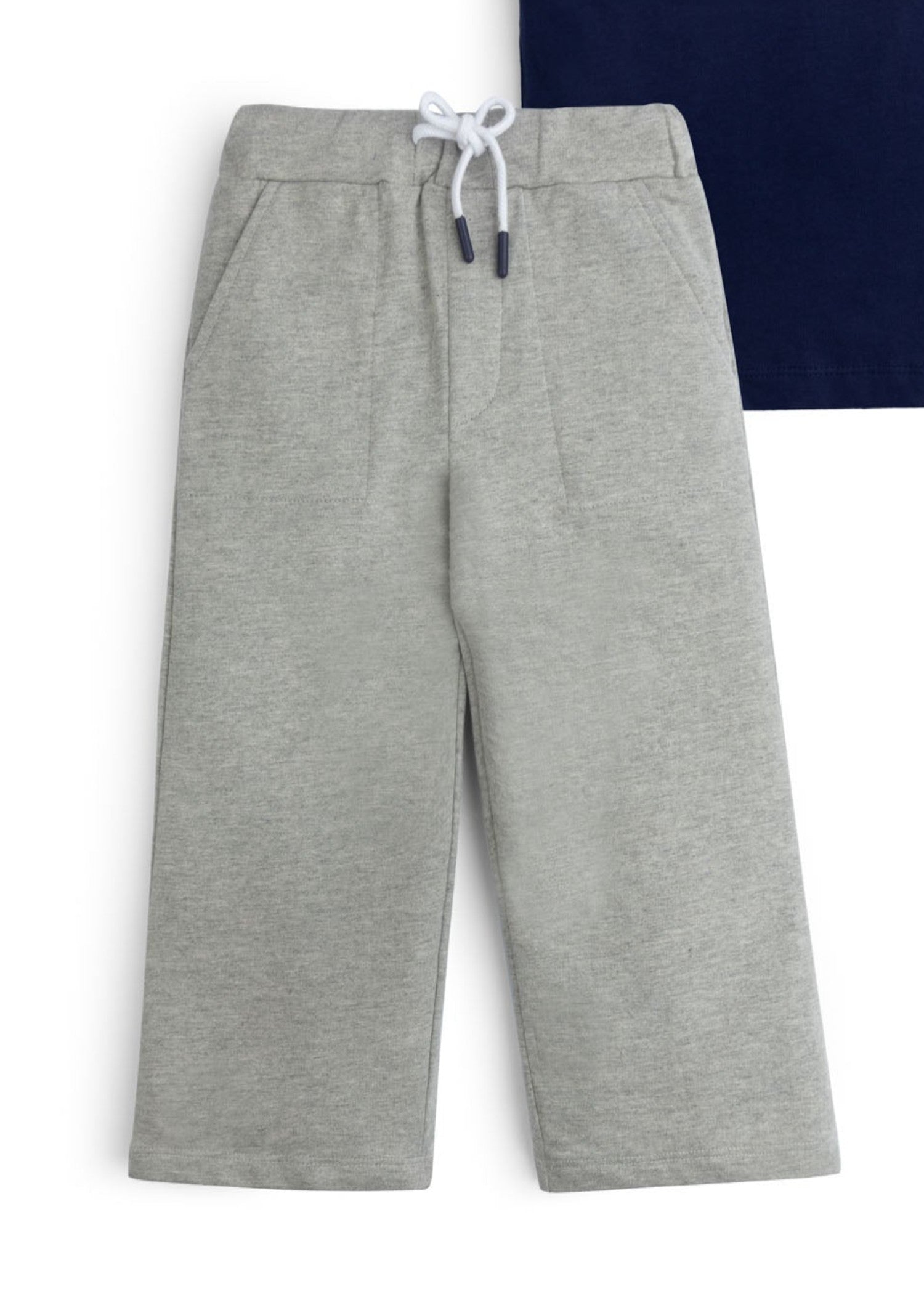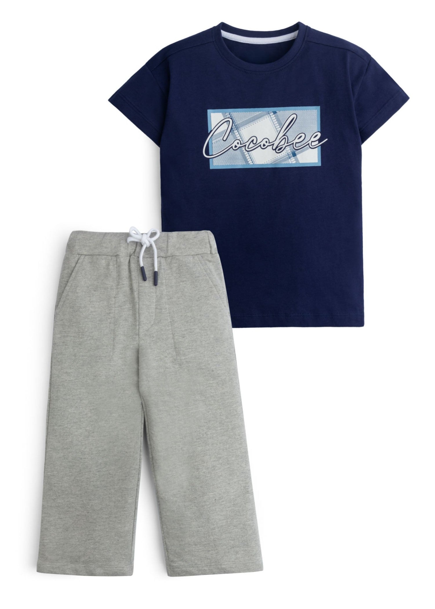 Additional Description:Â This trendy two-piece set featuring a graphic tee with a bold print, paired with ultra-soft trouser with an adjustable drawstring for effortless comfort and style.n