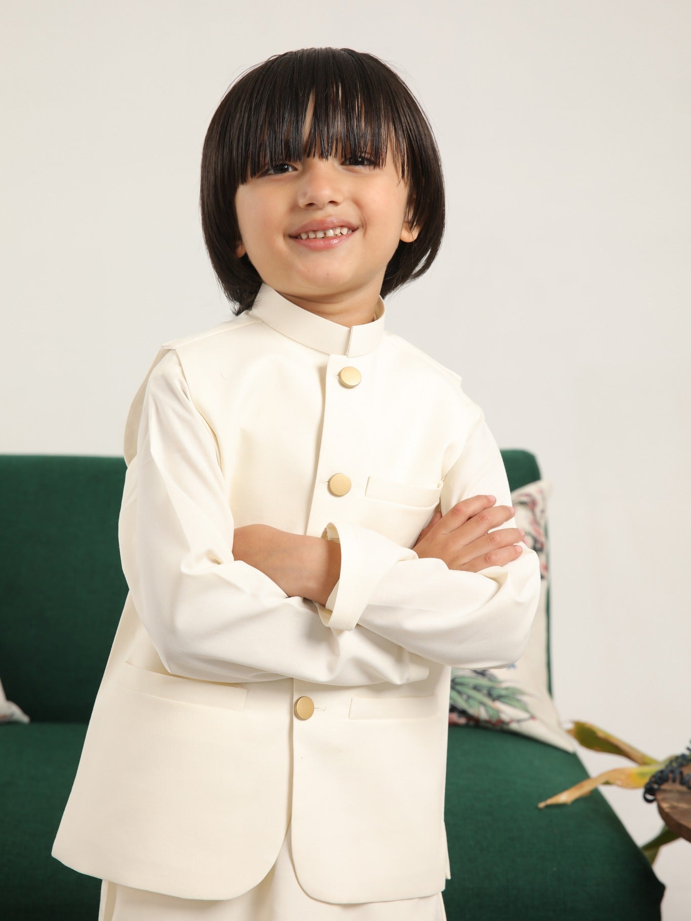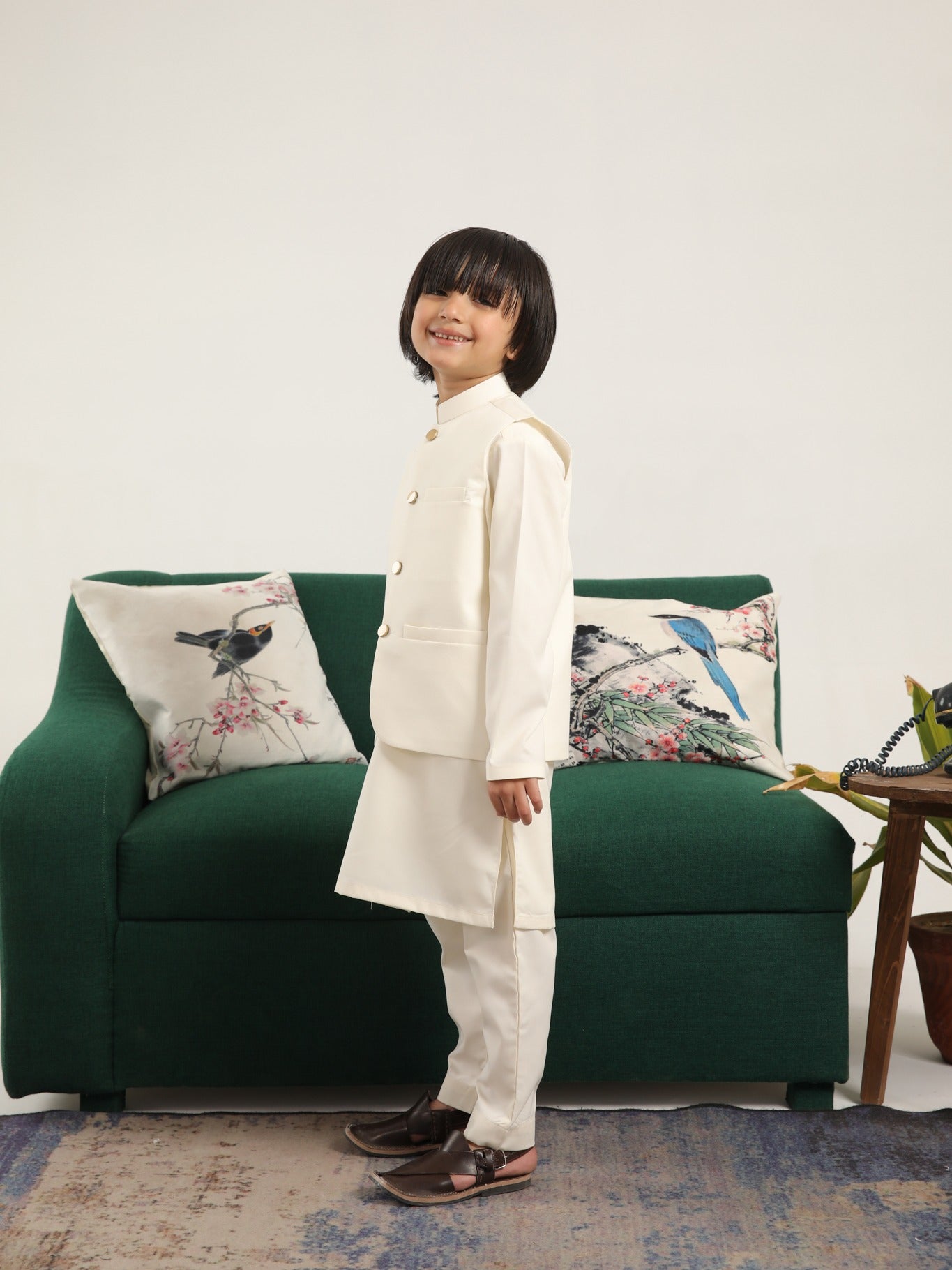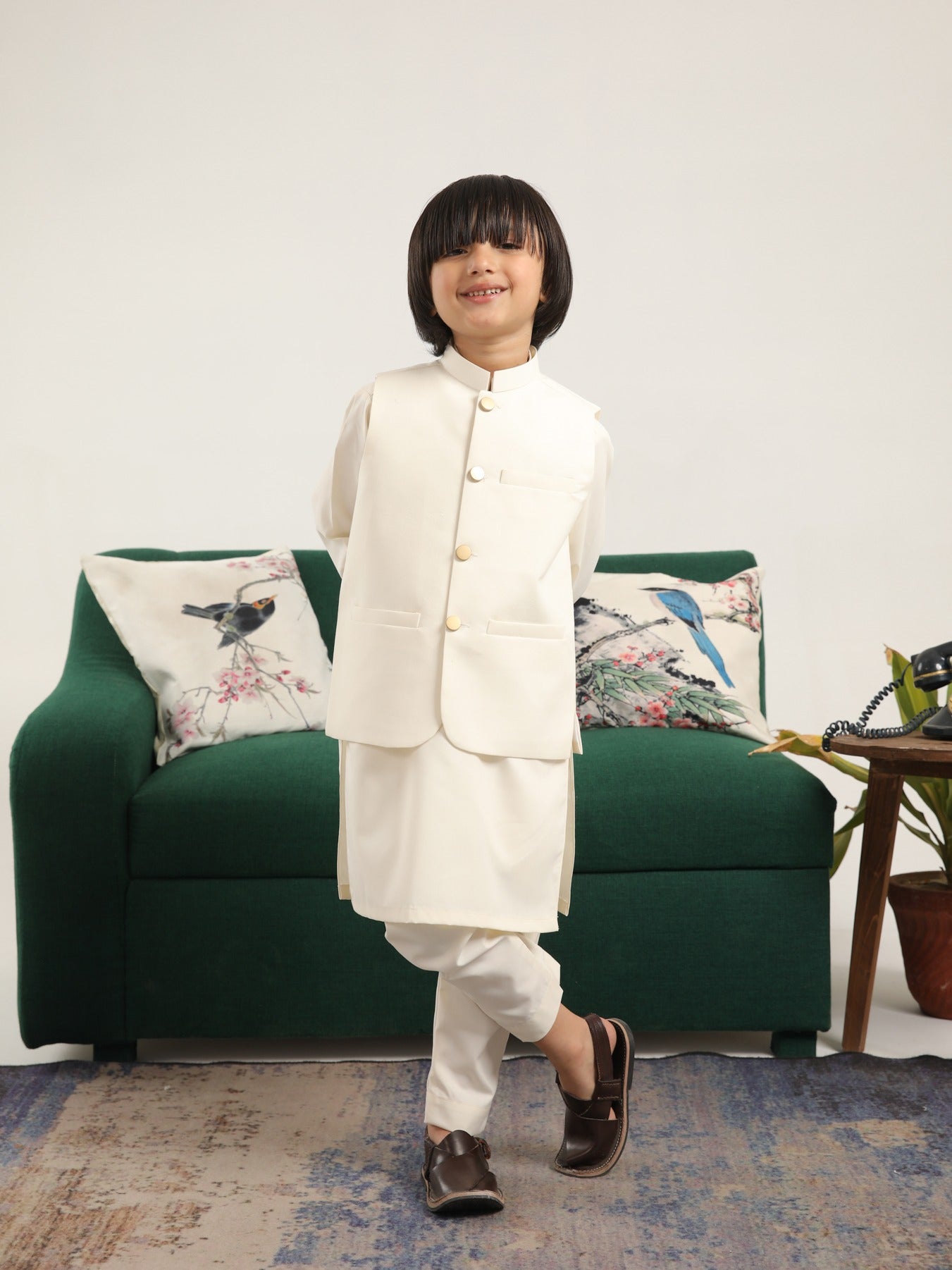 Bosky White Kurta Trouser with Blended Waistcoat – Kids