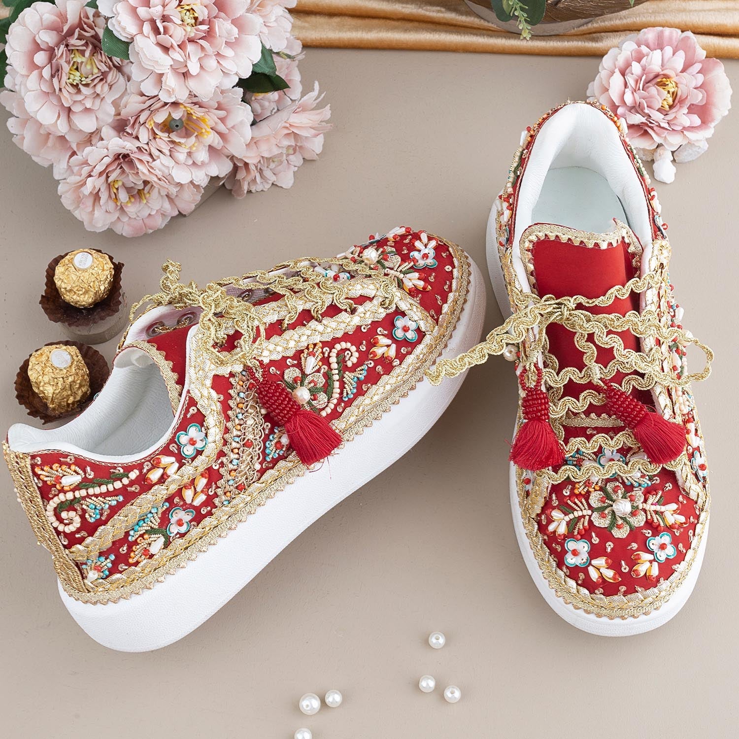 Additional Description:Â ZURUJ’s latest collection of Make to order bridal shoes, these bridal shoes are made with love and care to ensure that the Bride feels like a princess.nn These are make to order which takes from 30 to 40 working days.n
