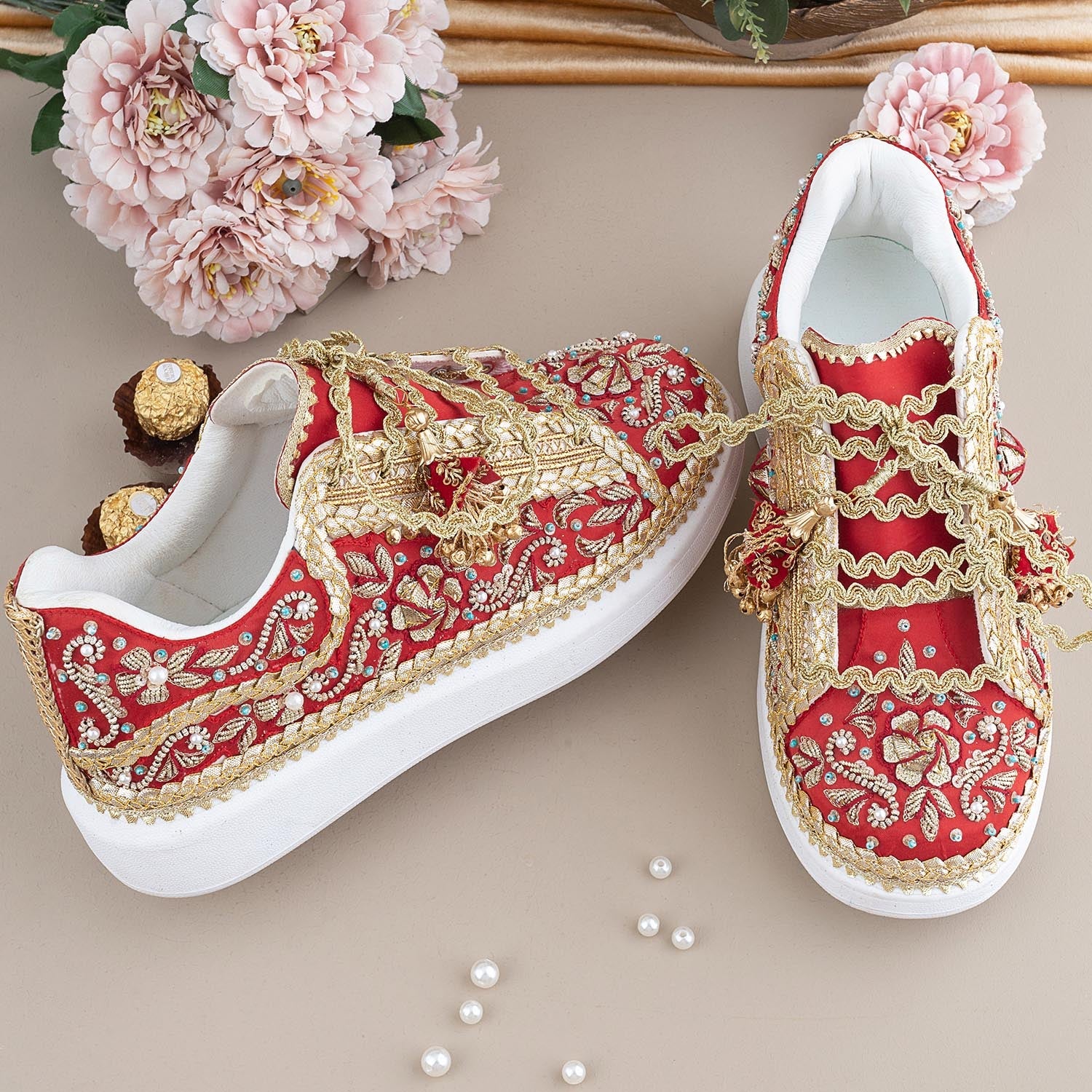 Additional Description:Â ZURUJ’s latest collection of Make to order bridal shoes, these bridal shoes are made with love and care to ensure that the Bride feels like a princess.nn These are make to order which takes from 30 to 40 working days.n