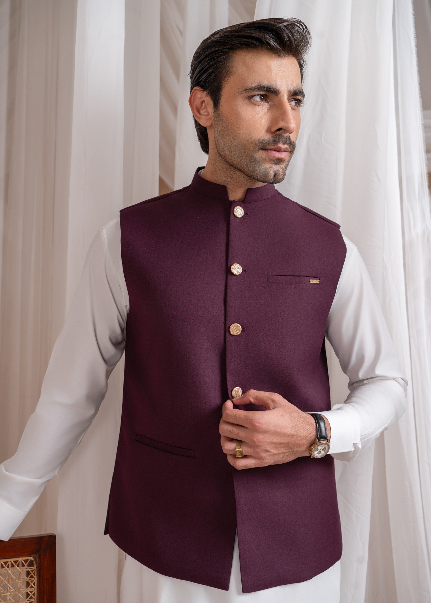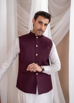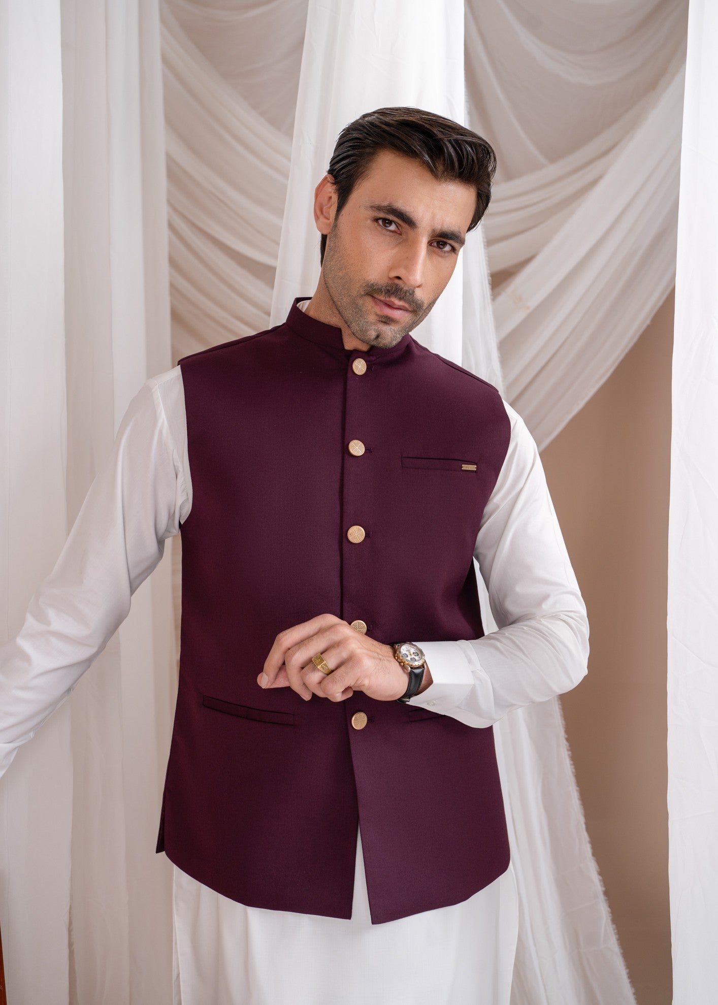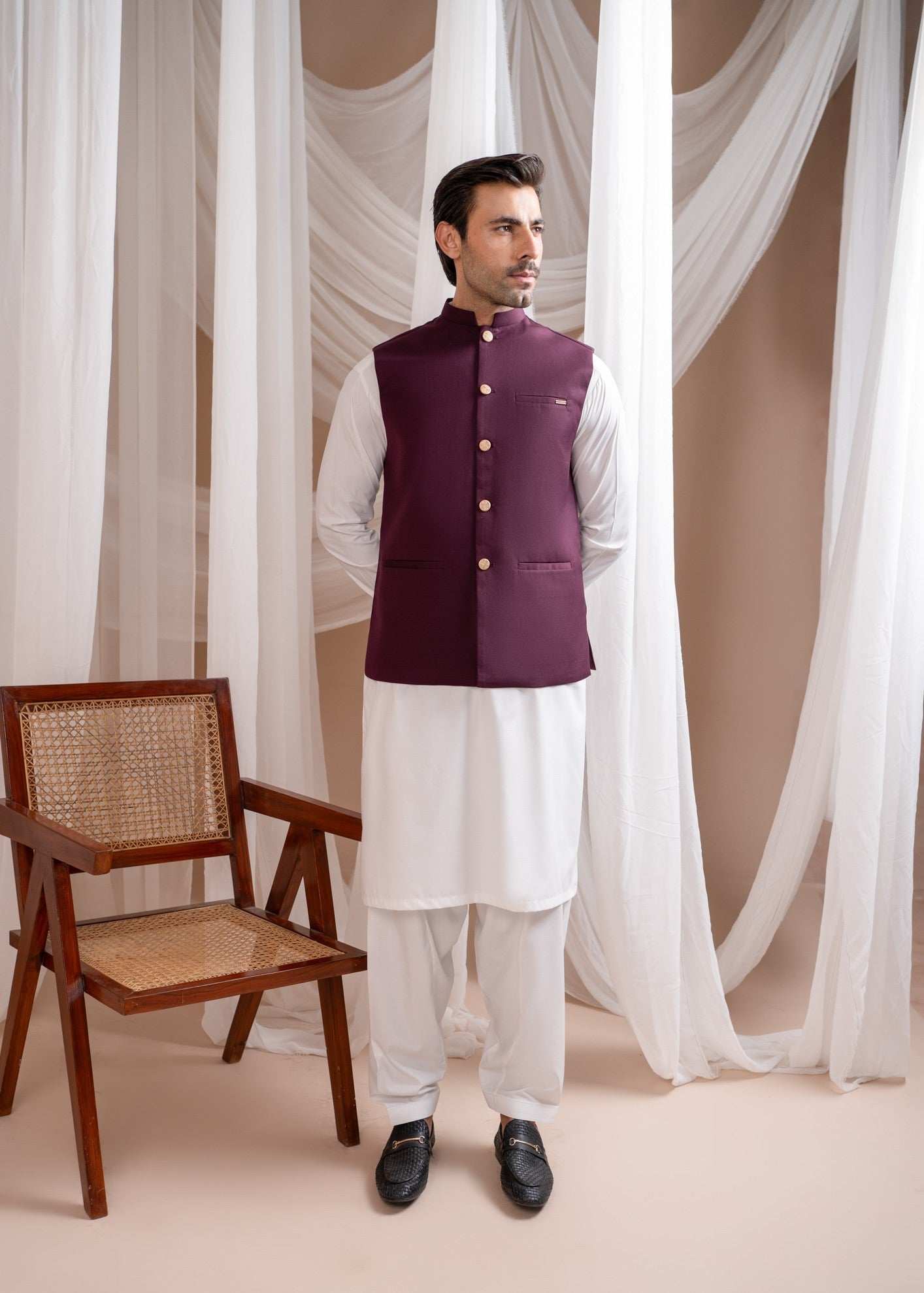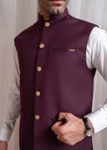 Burgundy Suiting Waistcoat – Straight Cut Buttoned – 1PC – Men