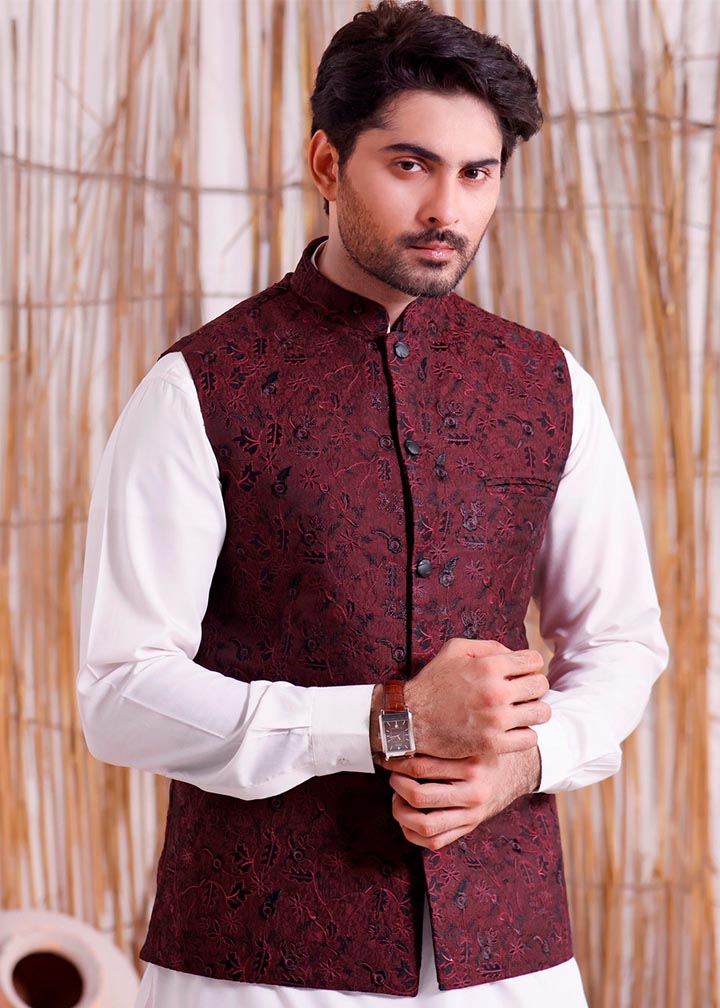 Additional Description:Â Men’s Formal Waistcoat on Jamawar Fabric with Embroidery.n