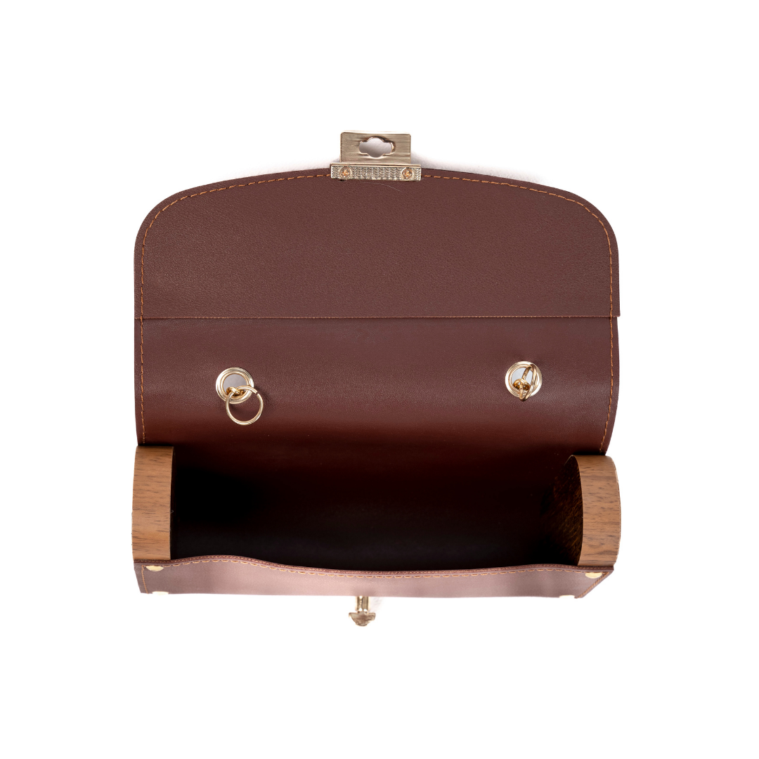 Additional Description:Â Stay stylish and sustainable with our eco-friendly Cedar bag featuring chic wooden sides.nComes with a long strap as well.nnDimensions : nLength: 8.5 in”nWidth: 02 in”nHeight: 04 in”n