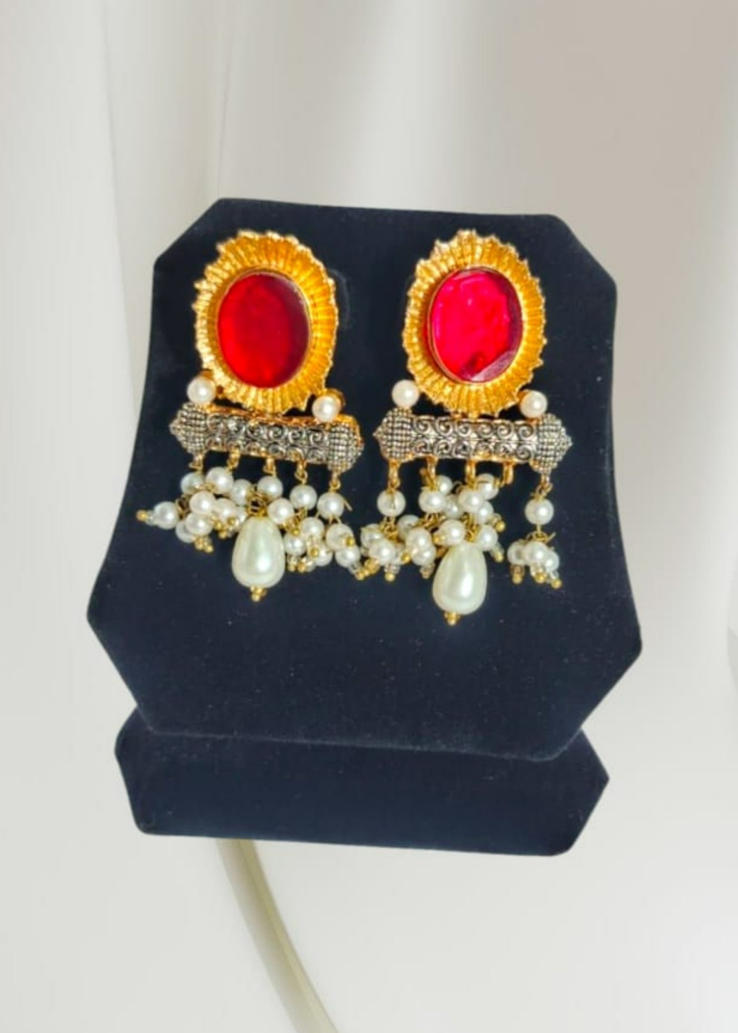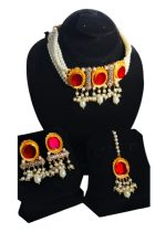 Additional Description:Â Elegant ruby and pearl choker set, with matching earrings and maang teeka. Perfect for traditional occasions.n