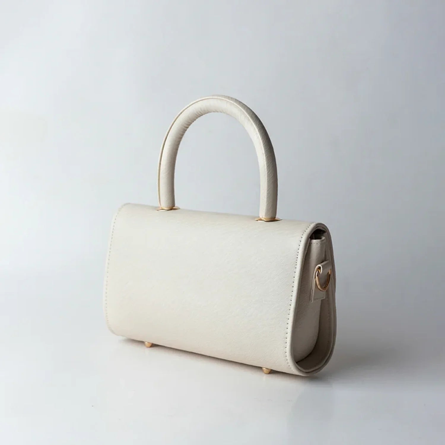 Additional Description:Â The Classic White bag is designed for those who appreciate luxury. Made from supple leather and adorned with subtle rose-gold accents, this bag exudes elegance. Its structured shape and polished finish make it perfect for formal occasions, while the spacious interior ensures you have room for all your necessities.nn Height =5 inchn Width = 9 inchn Depth = 3 inchnnNote: There may be slight variation of colors due to bright light.n