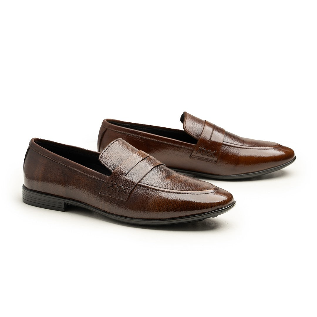 Additional Description:Â Elevate your style with these classic brown leather loafers, designed for the modern gentleman. Featuring a rich, glossy finish and a durable rubber sole with precision detailing, they promise unmatched comfort and sophistication.nnUpper: Leather 100%nInner Lining: Leather 100%nSole: Rubber Solen