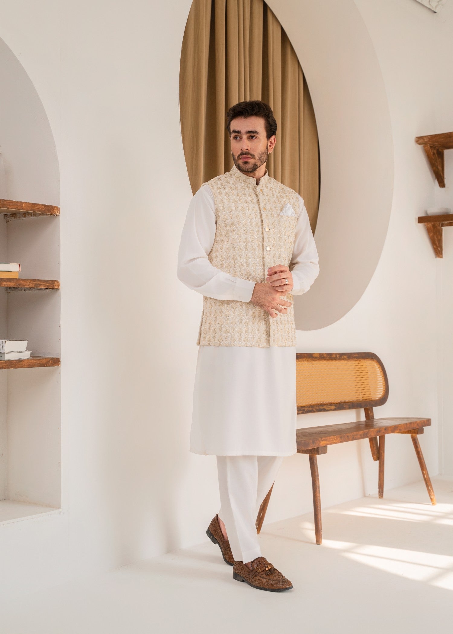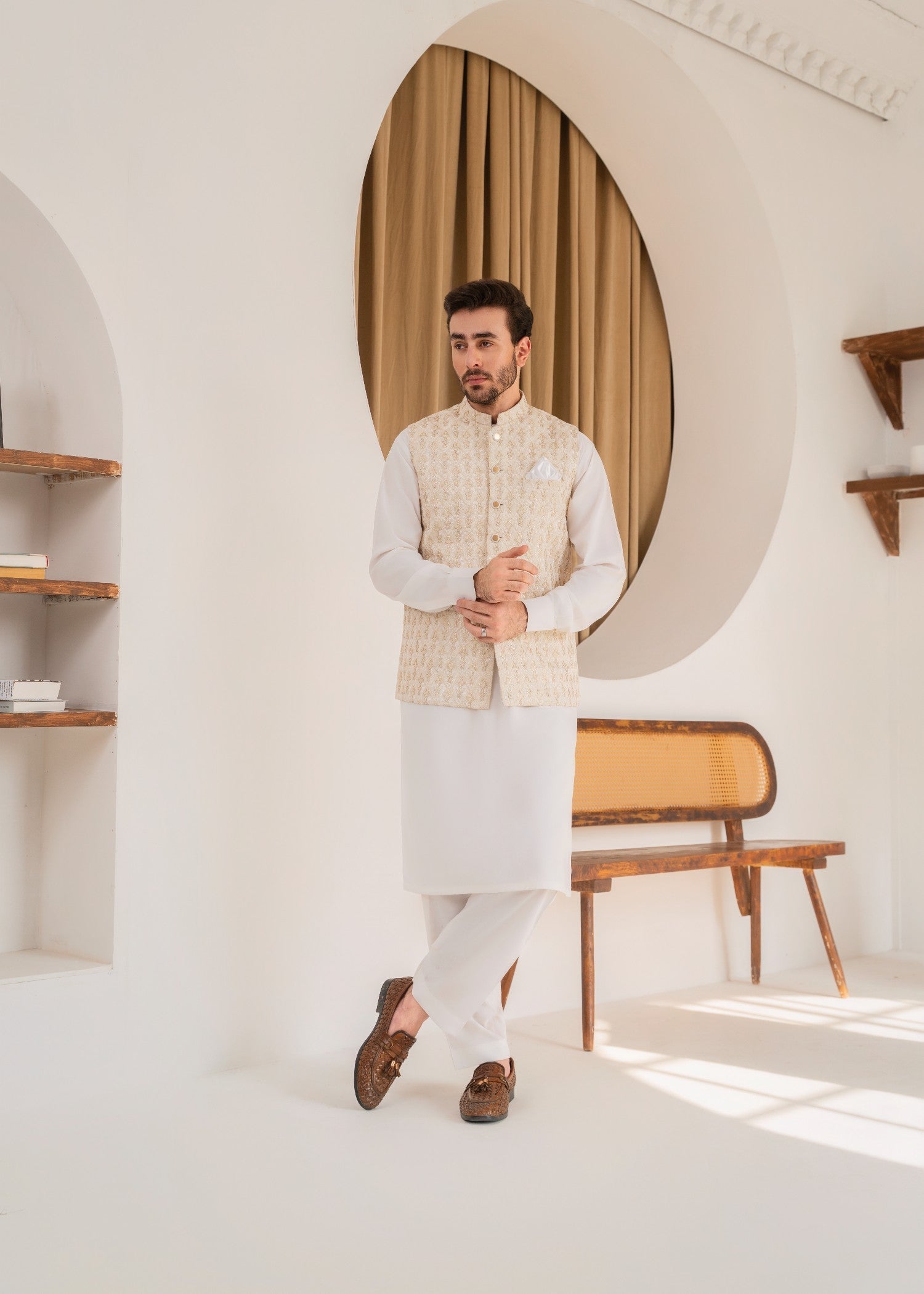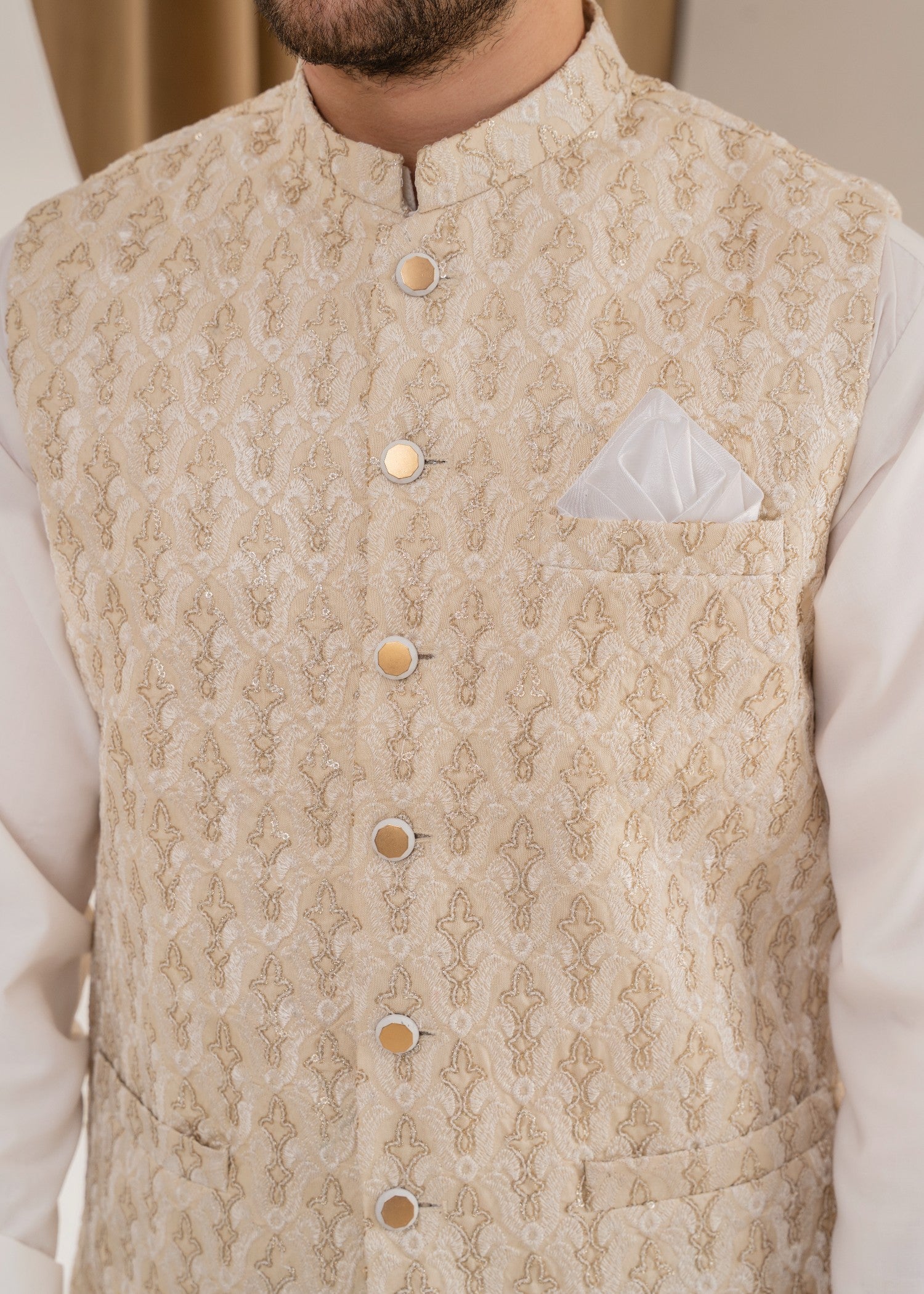 Additional Description:Â CREAM EMBROIDED WAISTCOAT WITH ELEGANT DESIGN AND LUXURIOUS FABRIC MAKING IT A PERFECT COLLECTION FOR YOUR WARDROBEn