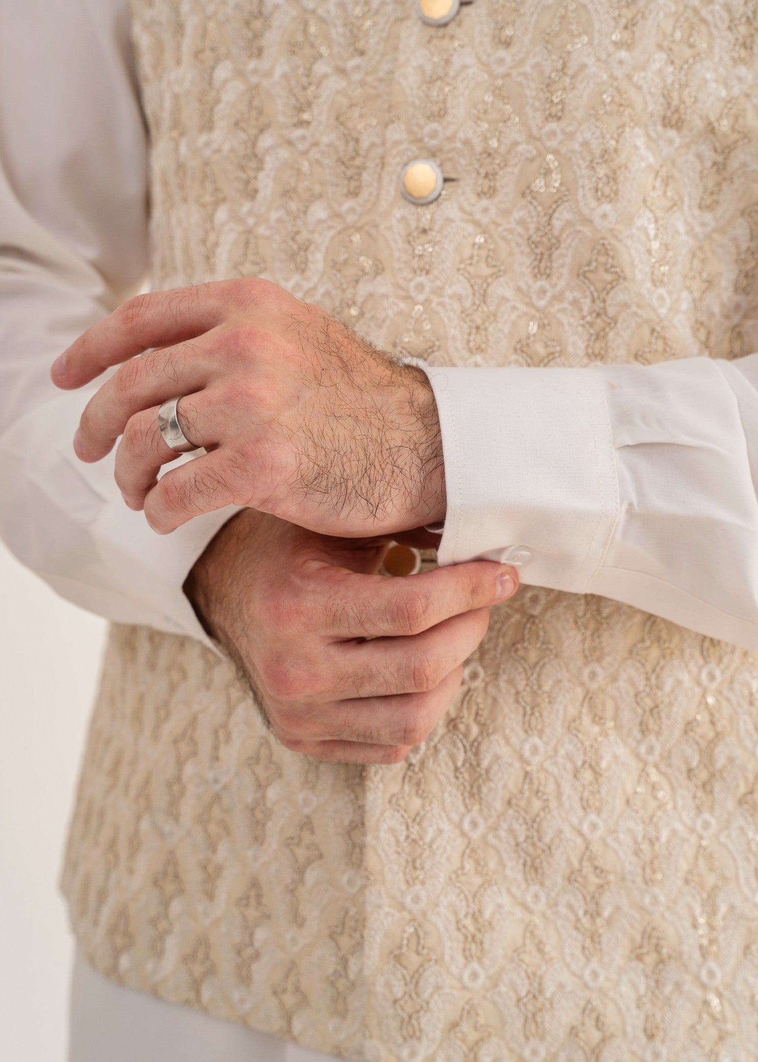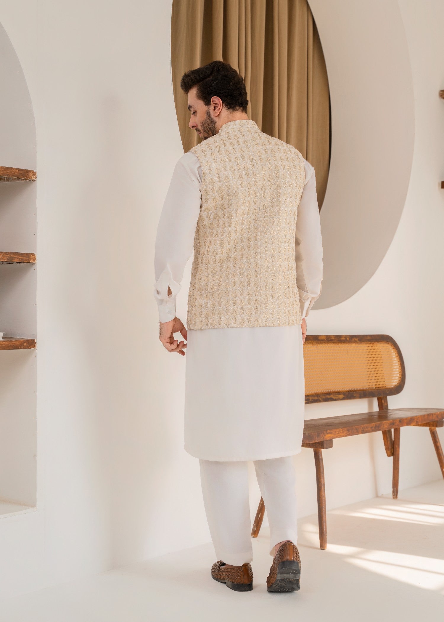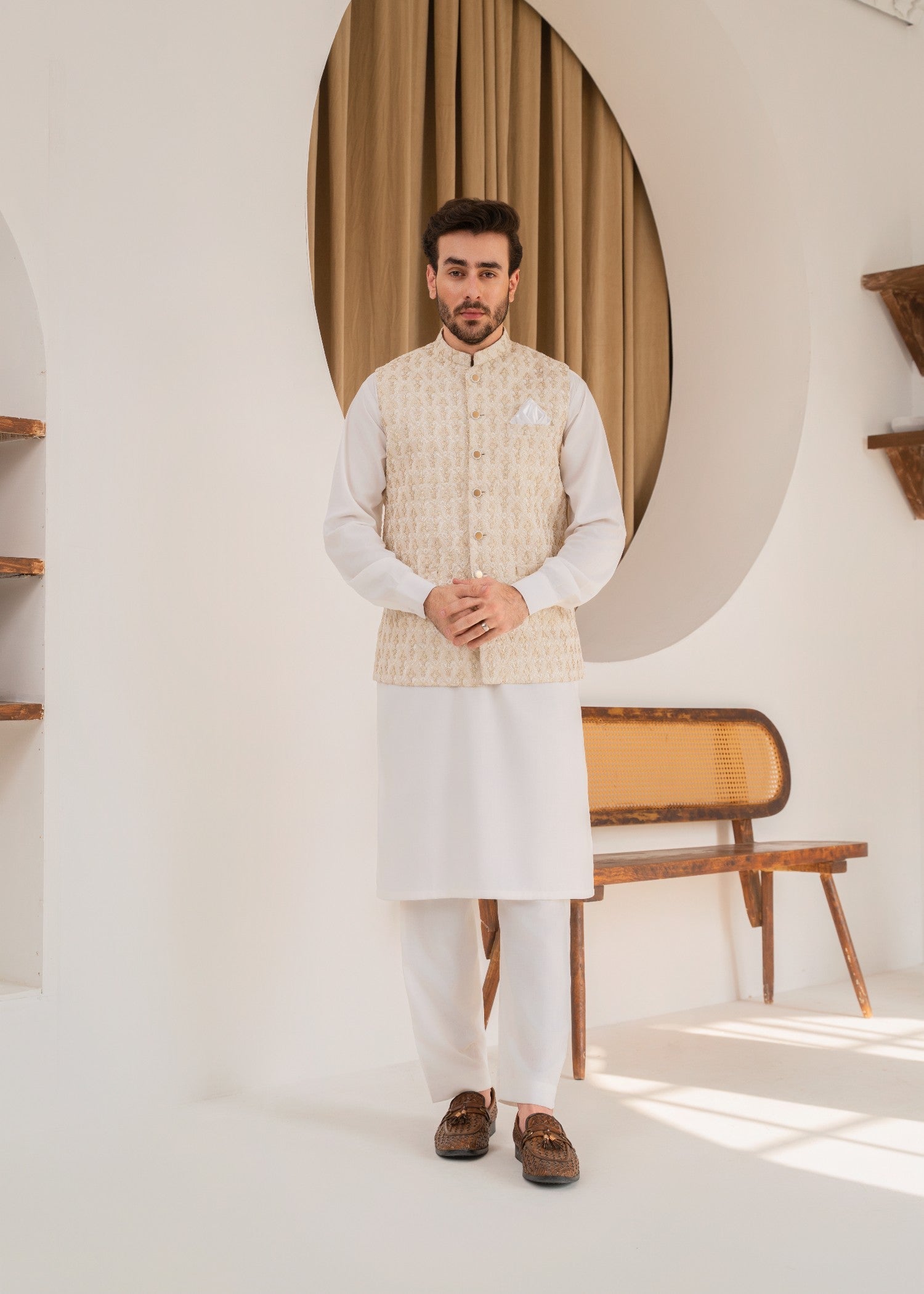 Additional Description:Â CREAM EMBROIDED WAISTCOAT WITH ELEGANT DESIGN AND LUXURIOUS FABRIC MAKING IT A PERFECT COLLECTION FOR YOUR WARDROBEn