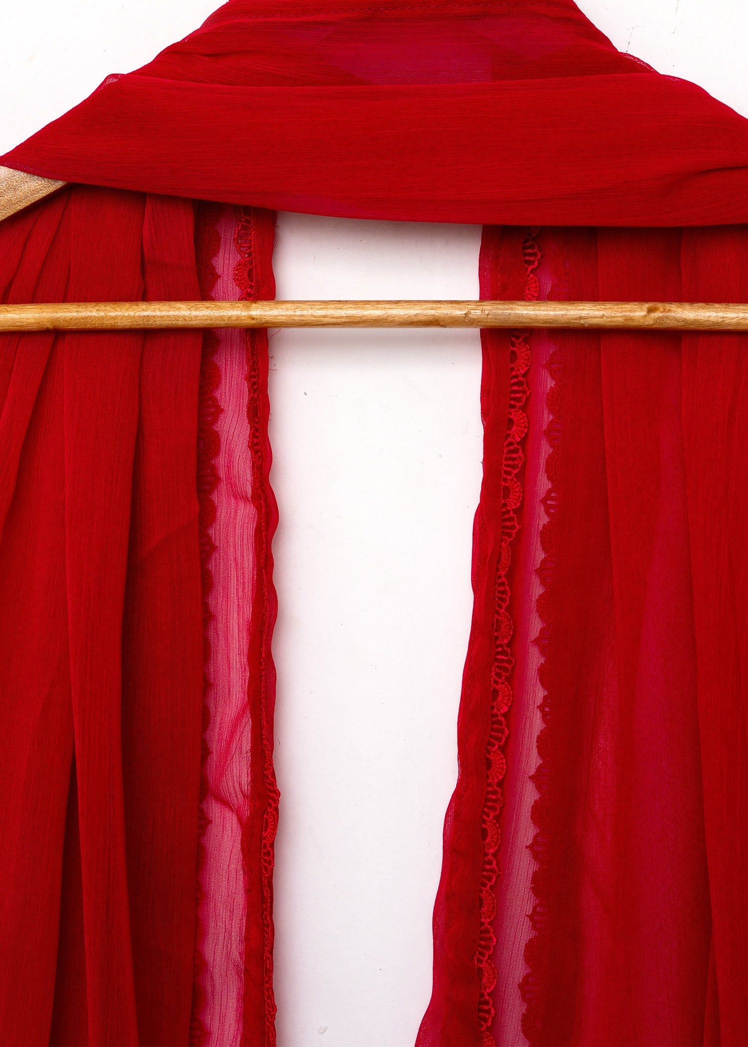 Gender:Â Womenn Category:Â Clothingn Outfit Type:Â Eastern Ready to wearn Sub-Category:Â Ghararan Bottom Style:Â Flared Ghararan Color Type:Â Magenta Hazen Dupatta Fabrics:Â Organzan Number of Pieces:Â 3 Piece