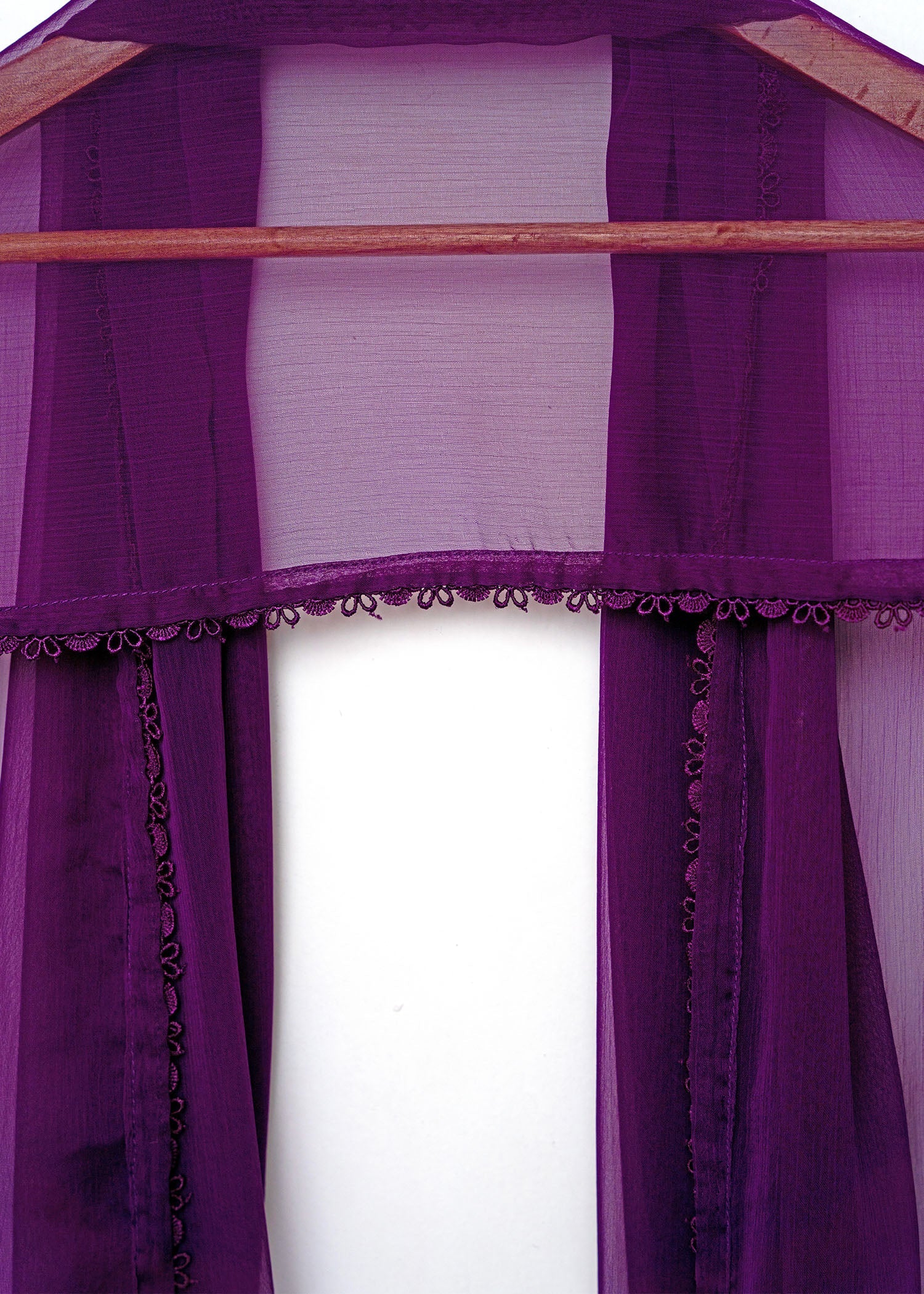 Gender:Â Womenn Category:Â Clothingn Outfit Type:Â Eastern Ready to wearn Sub-Category:Â Ghararan Bottom Style:Â Flared Ghararan Color Type:Â Magenta Hazen Dupatta Fabrics:Â Organzan Number of Pieces:Â 3 Piece