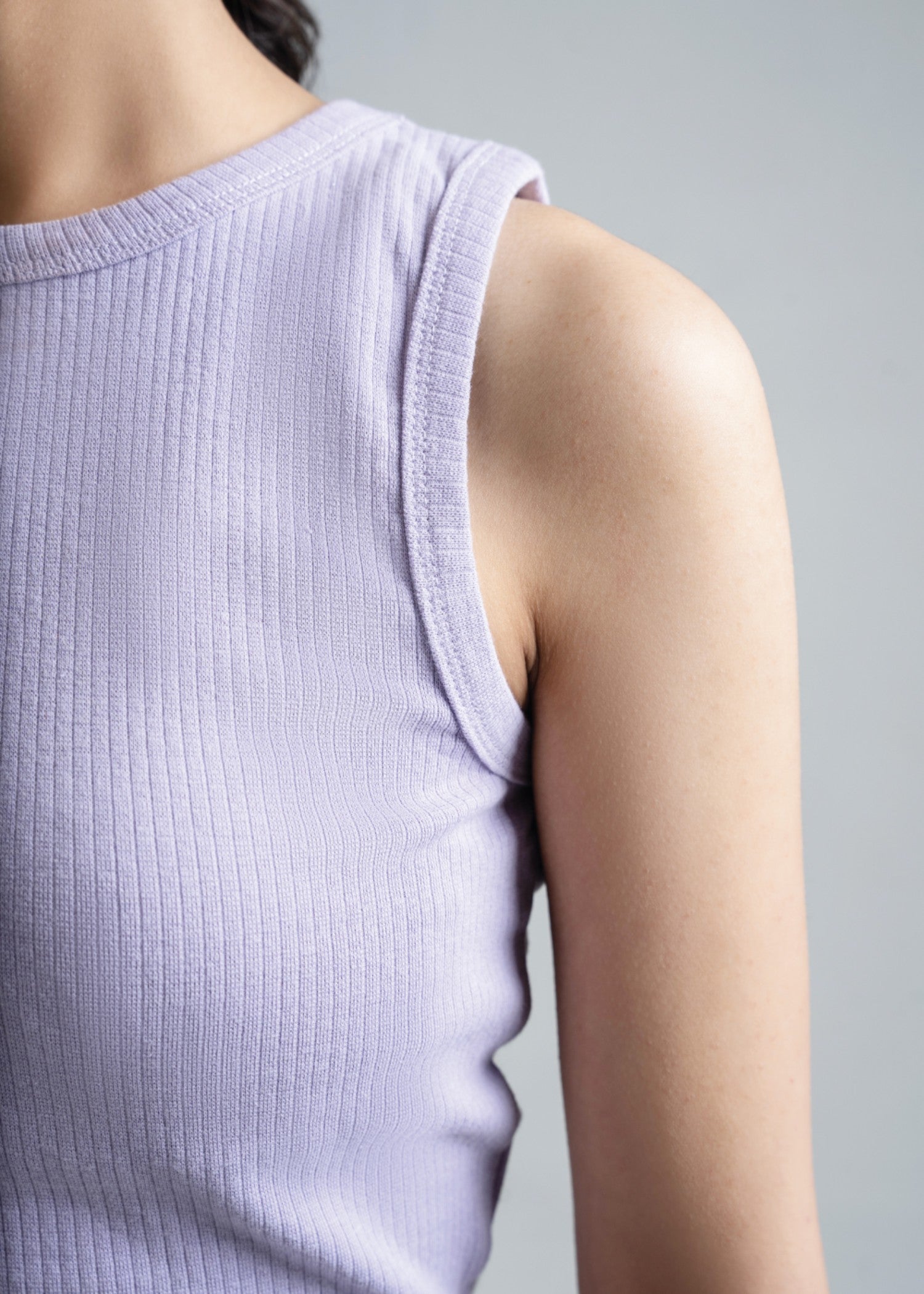 Additional Description:Â Lilac cropped tank top is a sleek, sleeveless piece that hits at the waist, blending comfort with a stylish, casual look.n