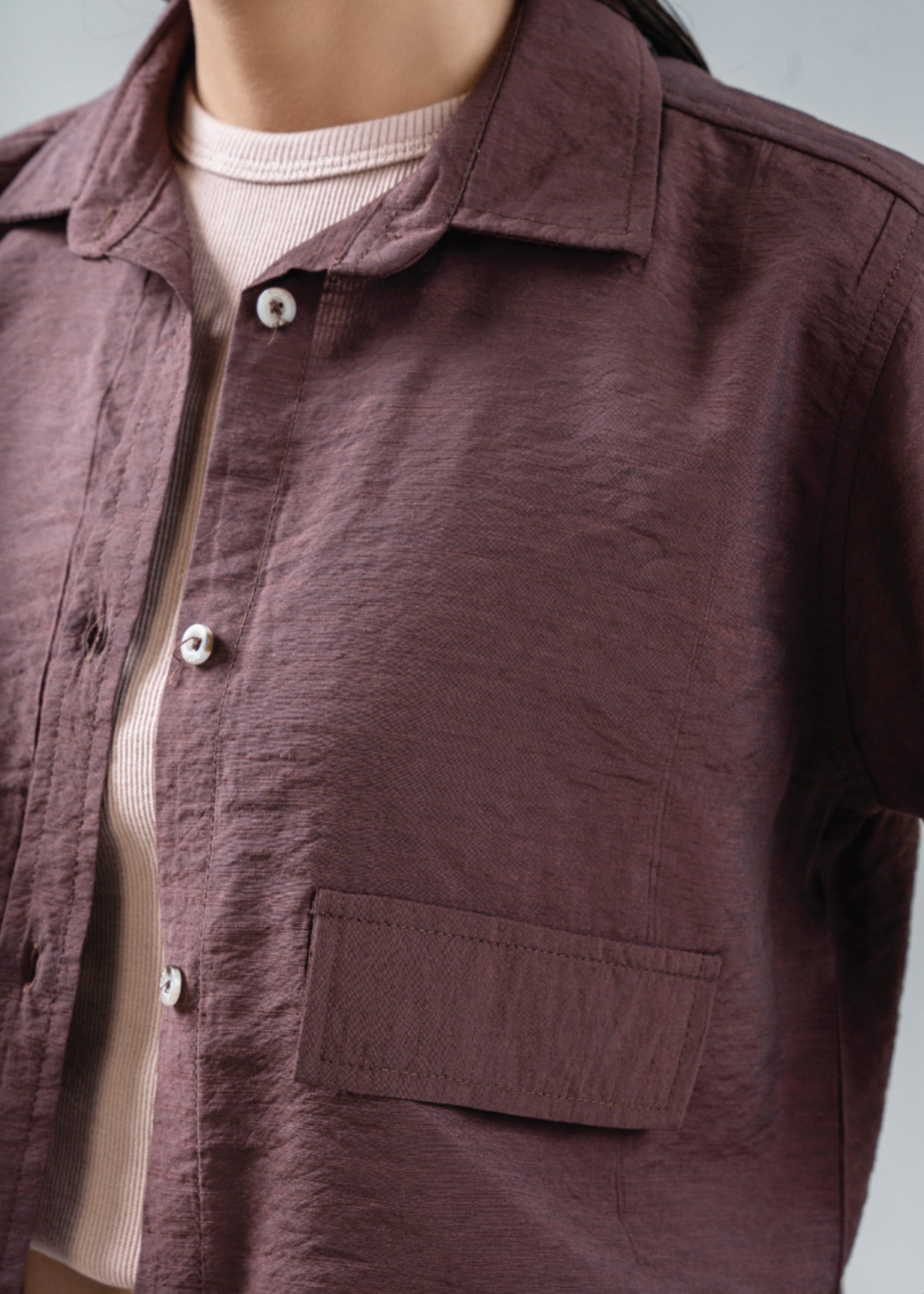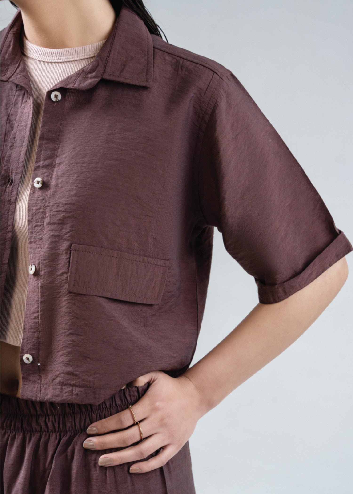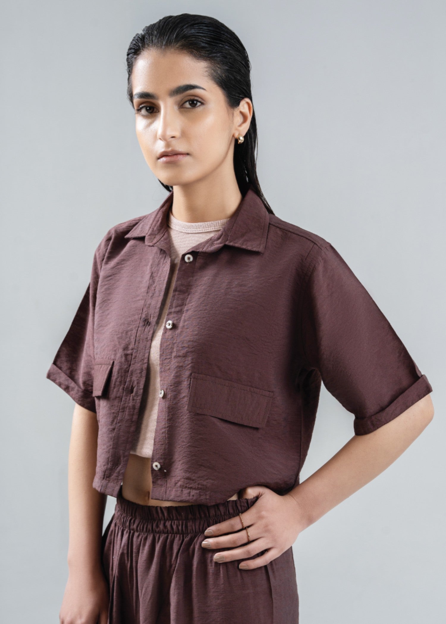Additional Description:Â A lightweight woven cropped button-down top with front flap pockets, made from wrinkle-stylish fabric for a laid-back summer look.nnn