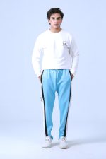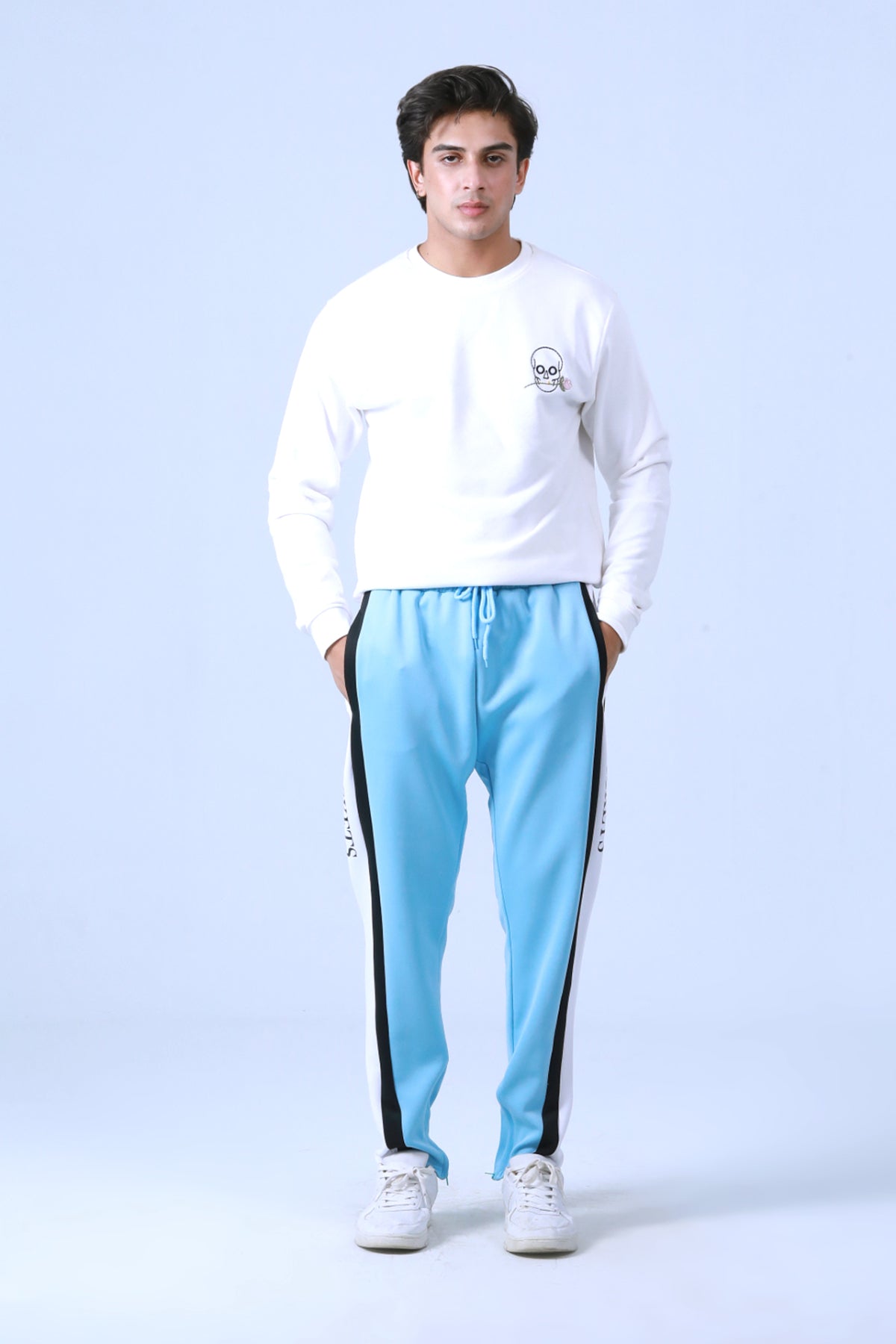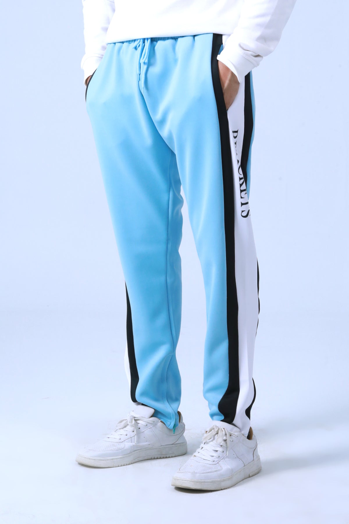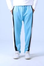 Additional Description: Elevate your wardrobe with our Cut Panel Trousers, thoughtfully designed to combine fashion and a unique visual flair. Crafted from Korean Scuba fabric, these trousers offer both comfort and style. The refreshing sky-blue color adds a touch of contemporary charm to your ensemble.nnnWhat sets these trousers apart are the bold black and white stripes on the sides, featuring our branding. This design element adds a dynamic and sporty edge to the classic trouser style. Whether you’re stepping out for a sporty day or a casual gathering.nn nnComposition & Care:nnMachine wash up to 30°C/86°F gentle cyclenDo not bleachnIron up to 110°C/230°FnDo not dry-cleannDo not tumble dry.nKorean Scoba Fabricnn