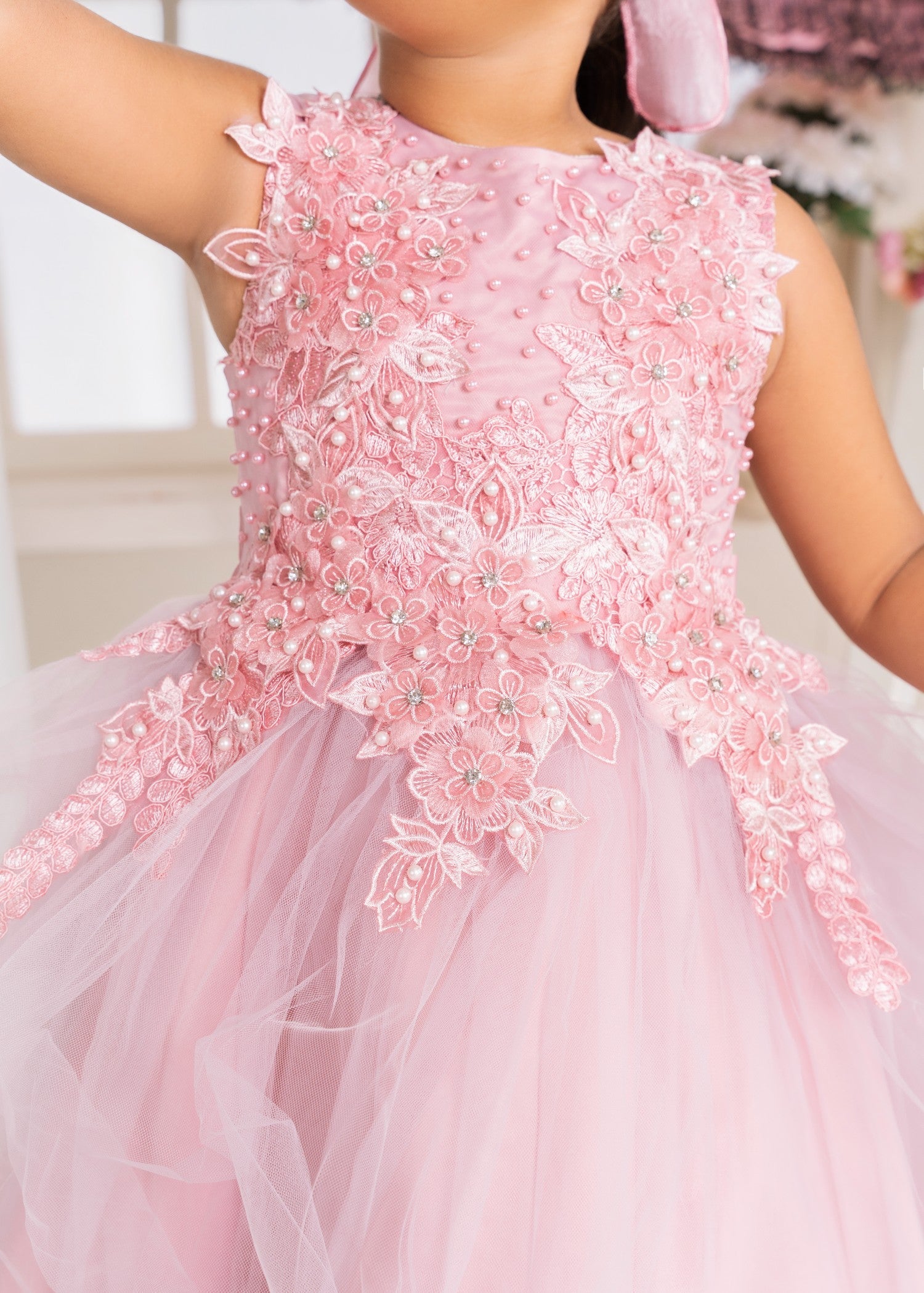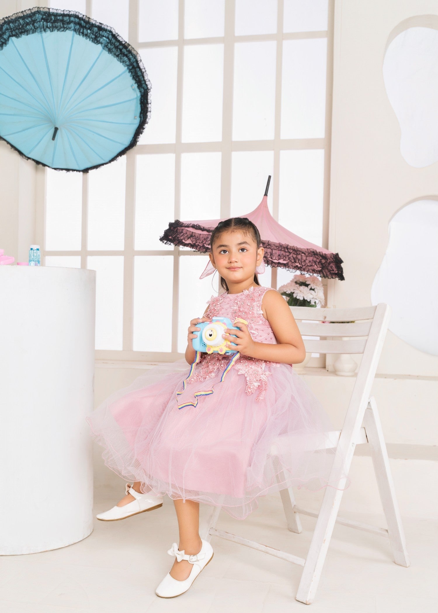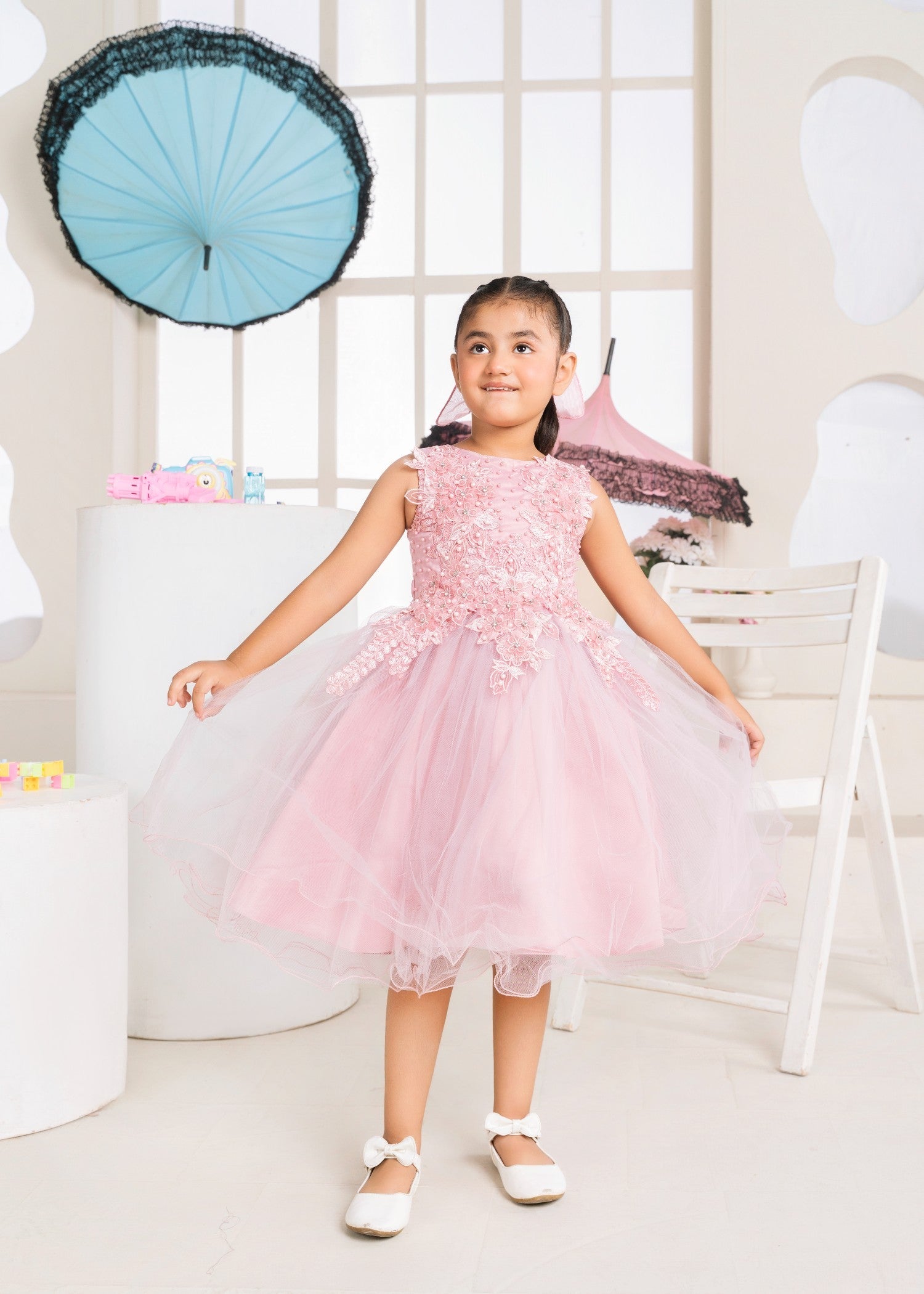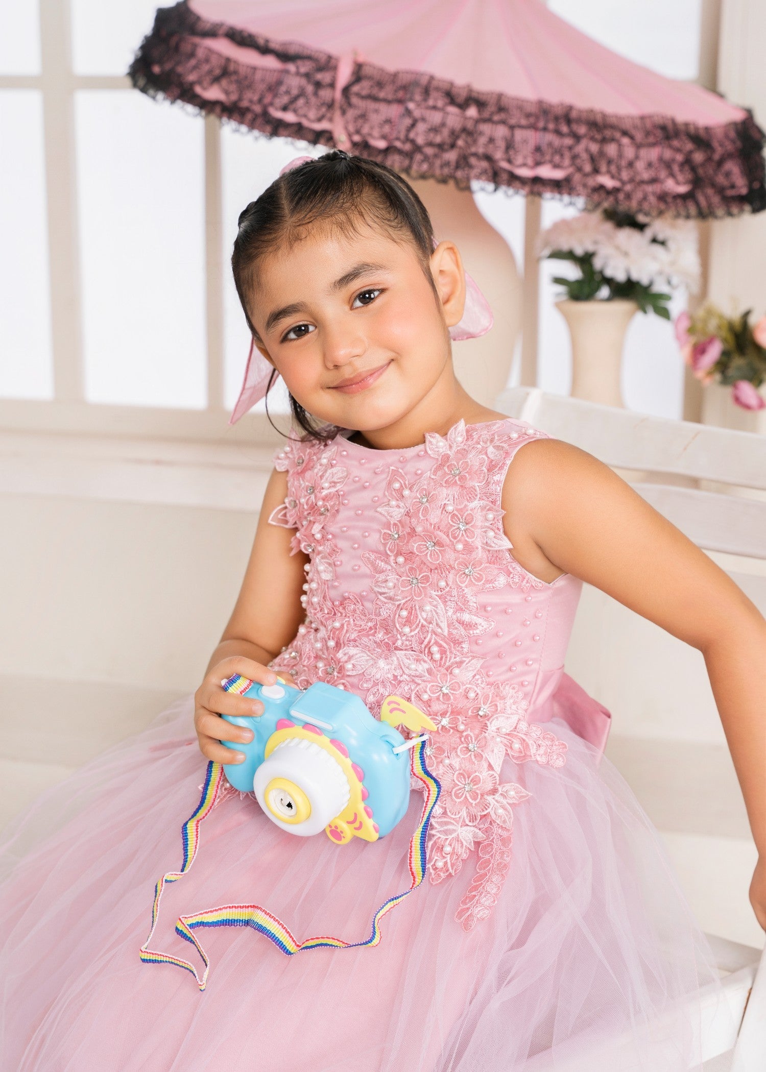 Gender:Â Girln Category:Â Clothingn Outfit Type:Â Easternn Sub-Category:Â Ghararan Bottom Style:Â Ghararan Color Type:Â Pinkn Dupatta Fabrics:Â Silkn Number of Pieces:Â 3 Piece – Top + Bottom +