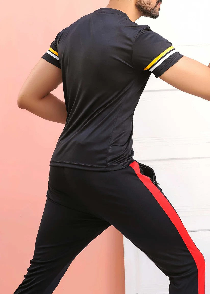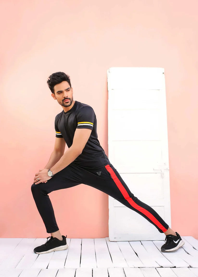 Additional Description: Gender: MennnCategory: ClothingnnOutfit Type: ActivewearnnSub-Category: TrousersnnColor Type: BlacknnFabric: PolyesternnNumber of Pieces: 1 PiecennFit : Body FitnnAdditional Description: 100% Polyester Material Moves with you and never loses its shape Elastic waist Relaxed through thigh Model is wearing size small and is 5.9 in height High quality stitching Regular fittings Soft and comfortable feel .nnSmooth, light fabric with sweat-wicking technology helps you stay dry and comfortable. Imported Zipper pockets keep your gear safe.nn- Squat ProofnnDisclaimer: Actual product color may vary slightly