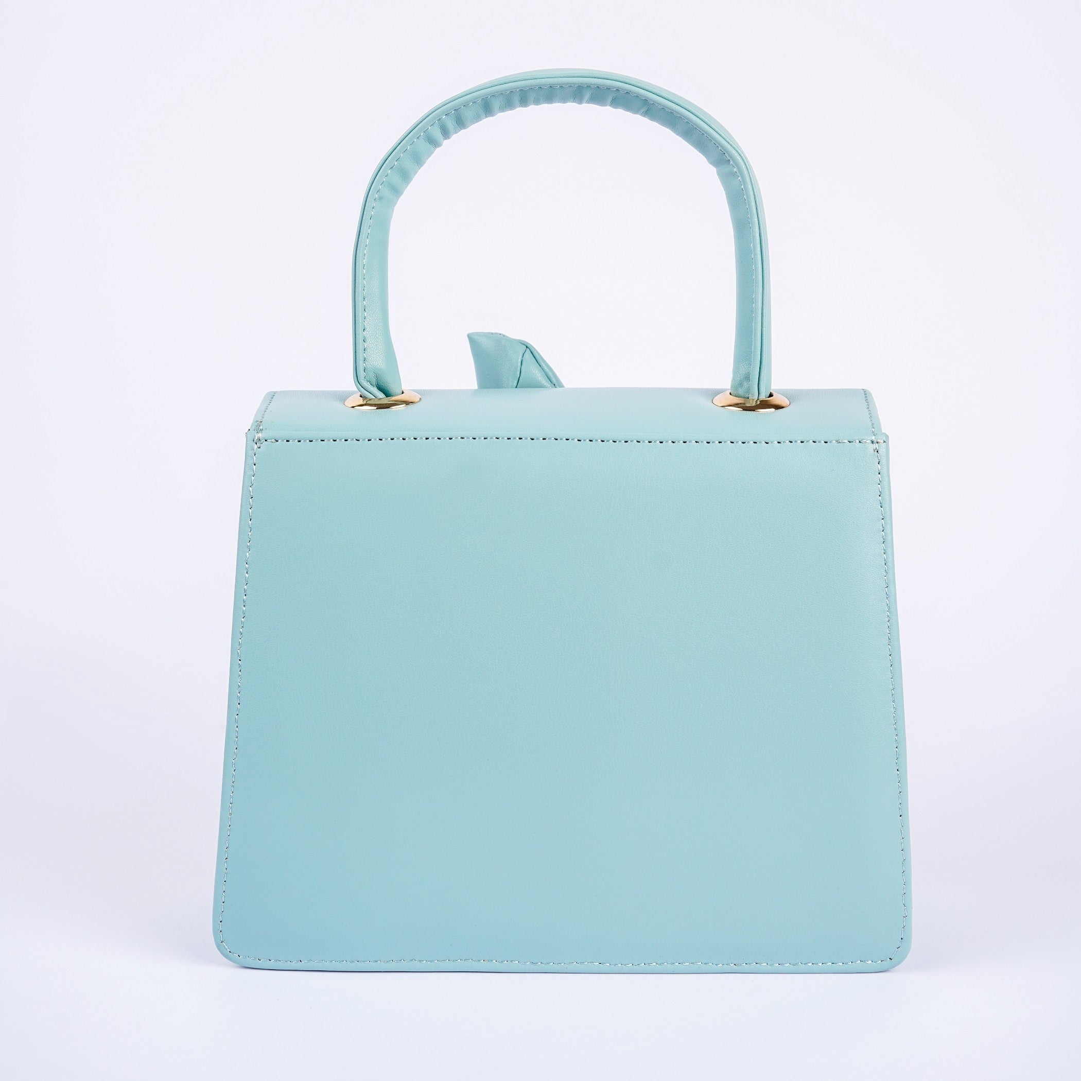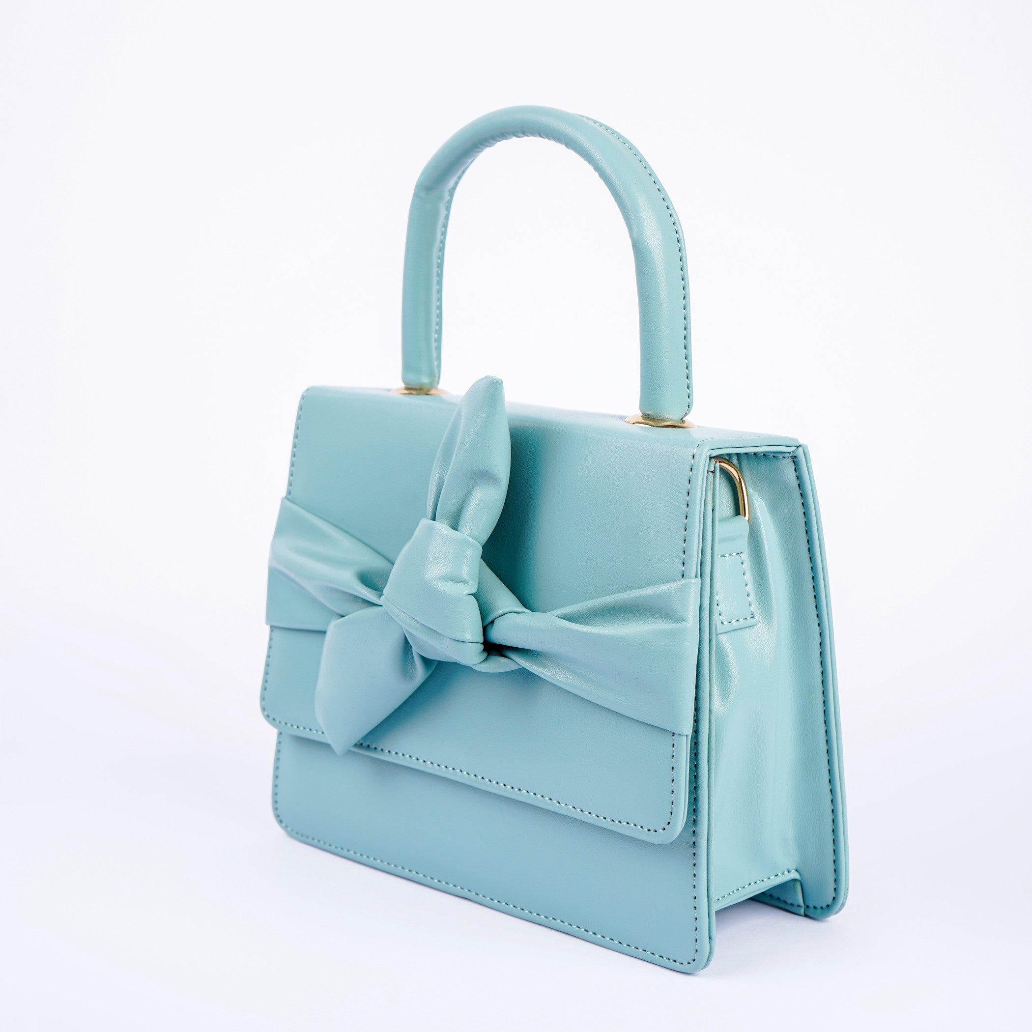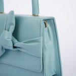 Additional Description:Â FLOR city bag with top handle and knotted detail on flap. One adjustable and detachable strap. Metal clasp closure.nnDimensions: 10″ x 9″ x 4″n