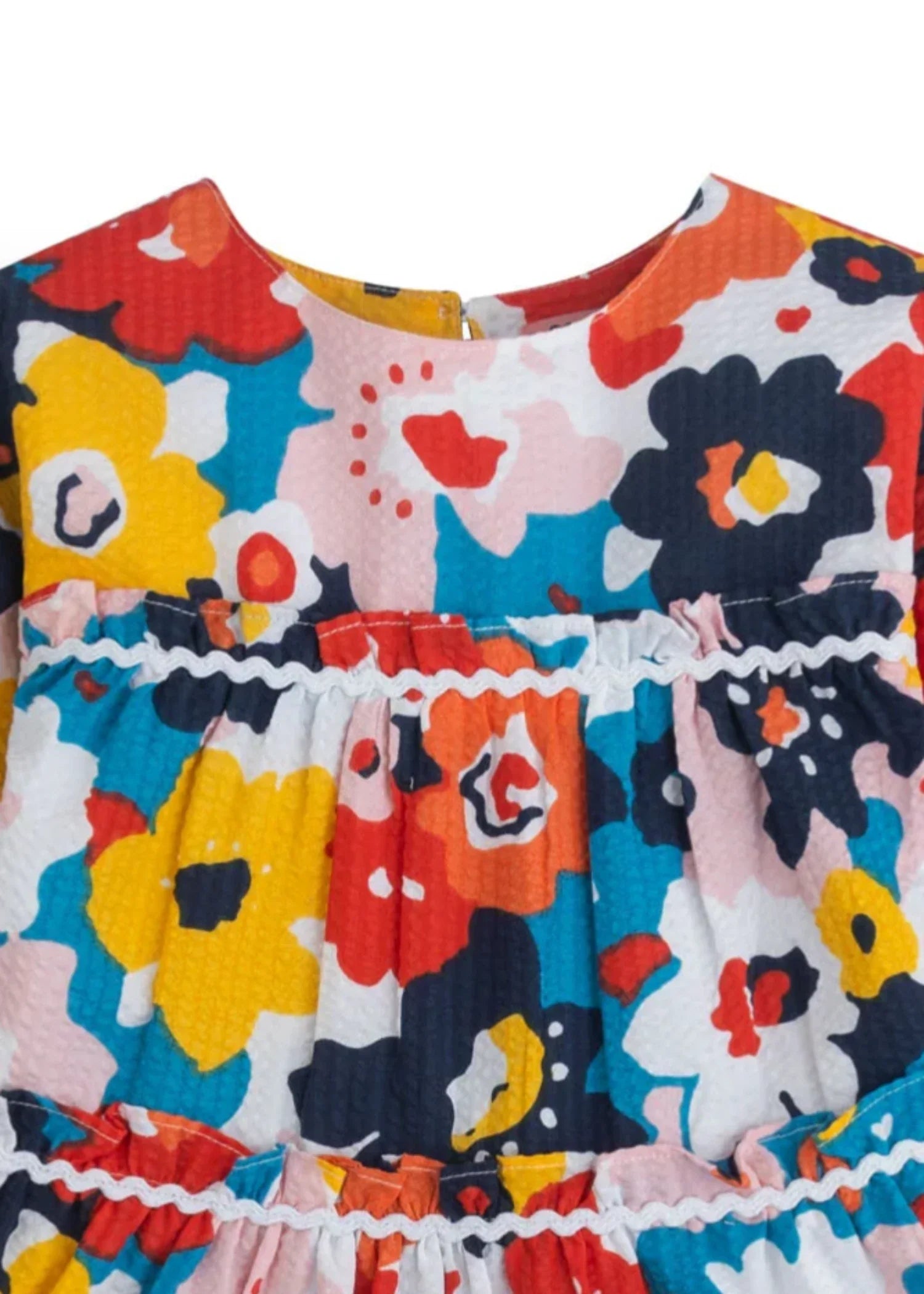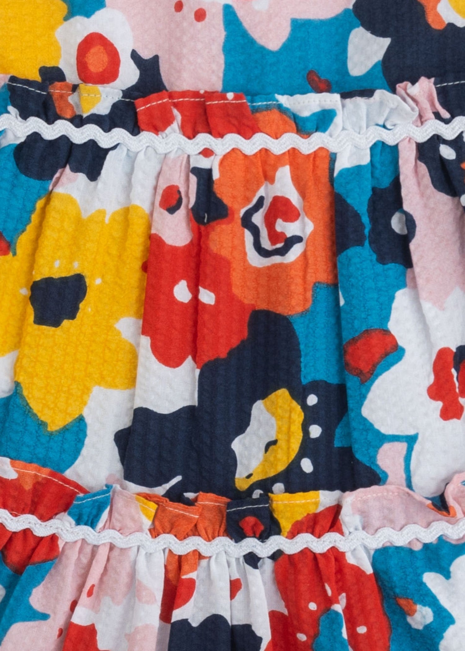 Additional Description: This self bubble cotton top bursts with vibrant multicolored hue, featuring elastic long sleeves, lacey ruffle tiers, and a breezy textured fabric for all-day comfort and charm.n*Please allow 0.5 inch +/- tolerance due to manual measurement*nn