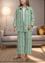Gender:Â Girln Category:Â Clothingn Outfit Type:Â Easternn Sub-Category:Â Kurta Setn Color Type:Â Greenn Number of Pieces:Â 2 Piece – Top & Bottomn Product Type:Â Daily/Basic Wearn Season:Â All