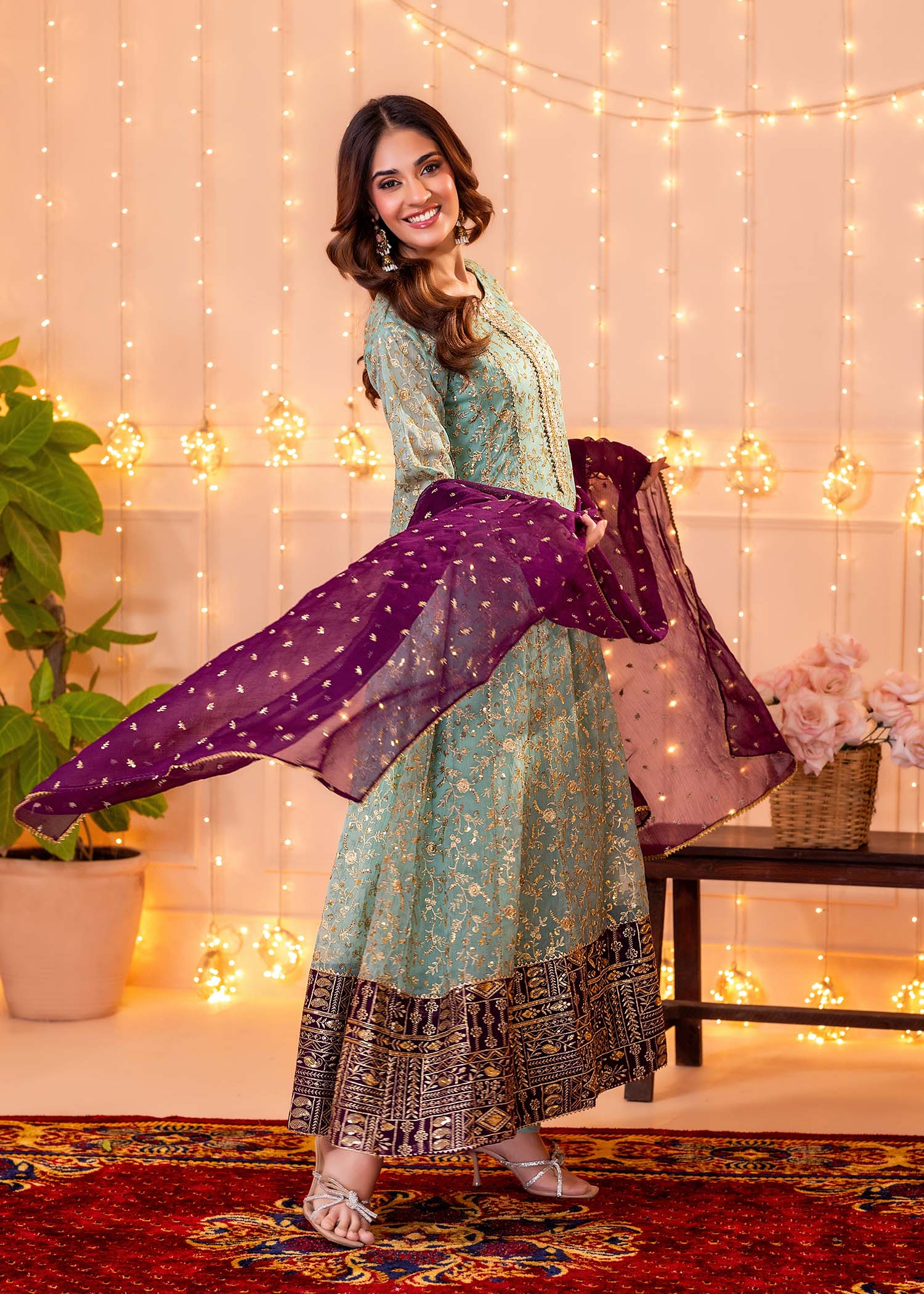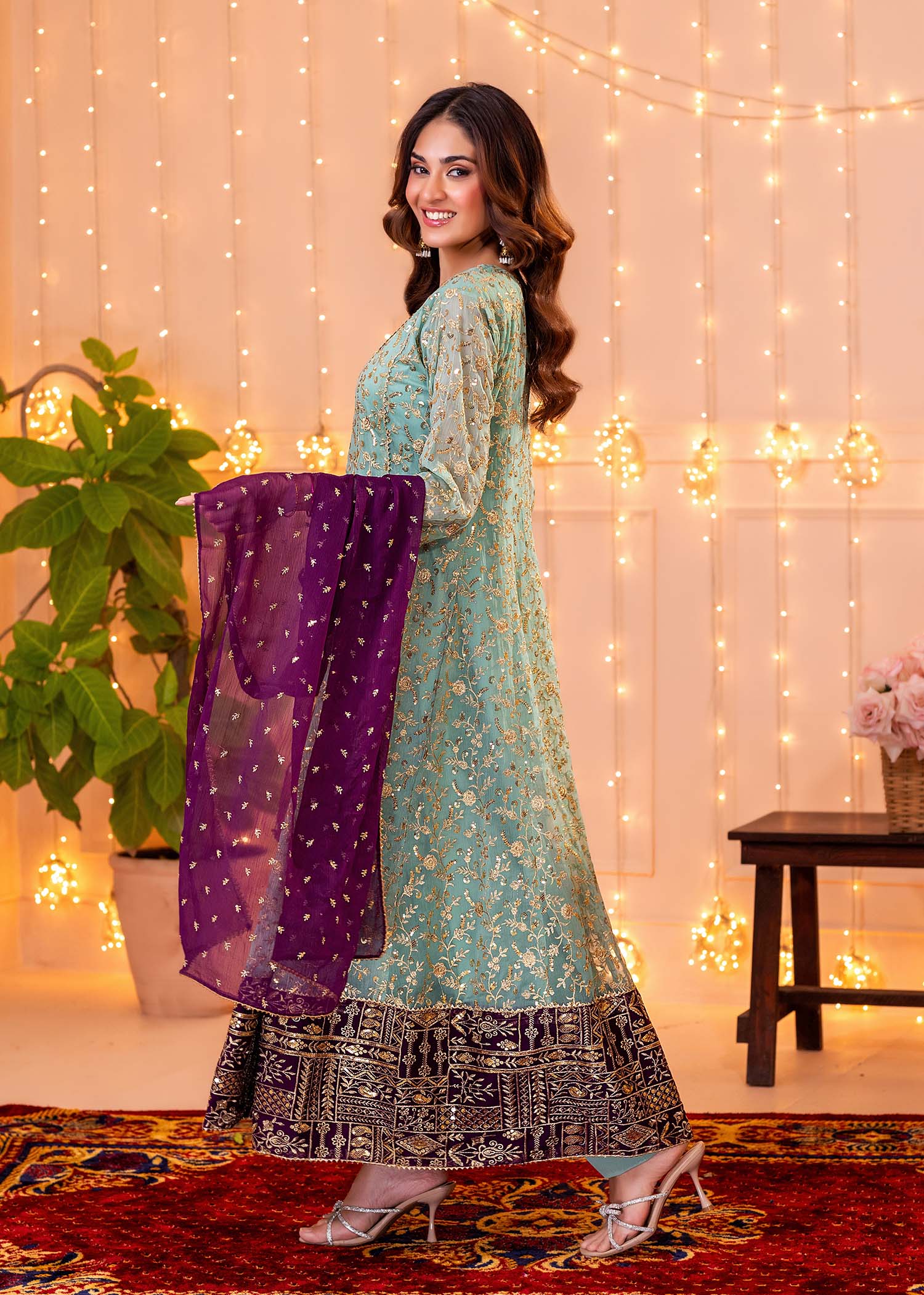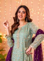Gender:Â Womenn Category:Â Clothingn Outfit Type:Â Eastern Ready to wearn Sub-Category:Â Ghararan Bottom Style:Â High-Waisted Ghararan Color Type:Â Pastel Greenn Dupatta Fabrics:Â Organzan Number of Pieces:Â 3 Piece