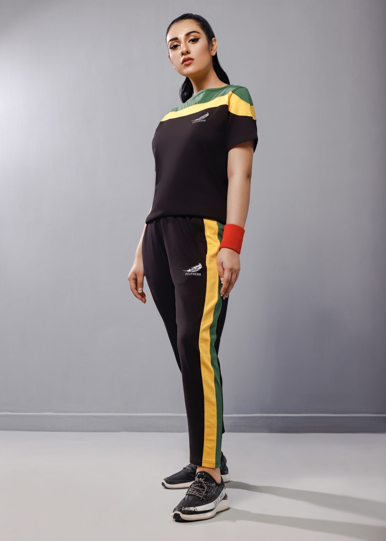 Additional Description:Â Keeping up with the winter trend, Feathers has come up yet again to knock your hearts & doors. Mesmerizing prints & cuts with matchless comfort crafted on light stretchable summer fabric especially designed to soothe the seasonal warmth is what the collection is all about.nnOutfit: The article composes of white tees with printed yellowish butterflies. The yellow trouser pants is exclusively designed with complimented broad belt.nnFabric: Shirt is composed of 100% cotton while the trouser pant is cotton terry. The fabric is especially crafted sweat free for Asian summers.nnFeel the comfort you crave!nnPremium export quality.nn