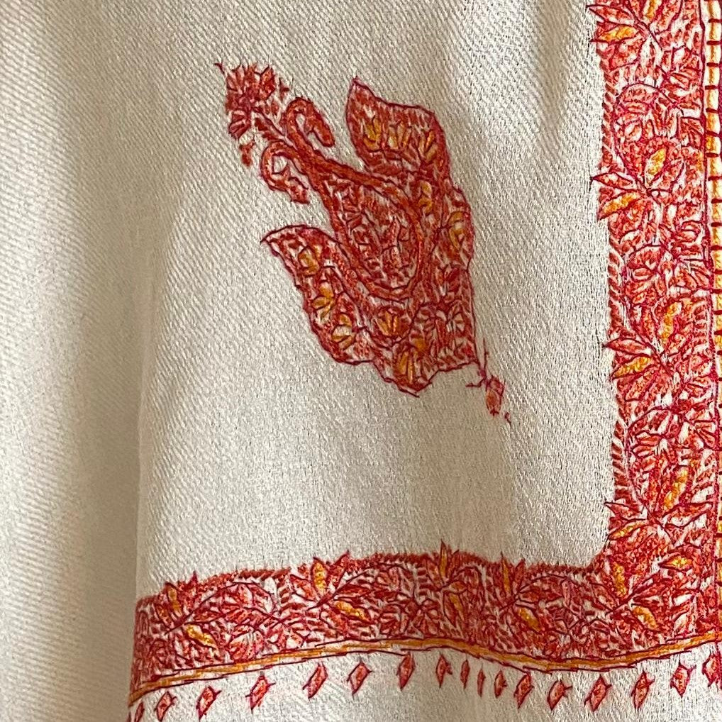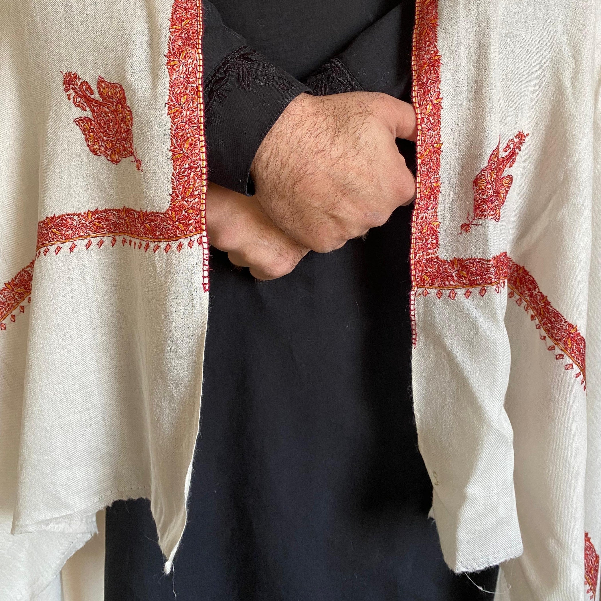 Luxurious Men’s Kashmiri Hand-Embroidered Shawl – Pure Australian Merino Wool – Lightweight & Warm | Beige 4