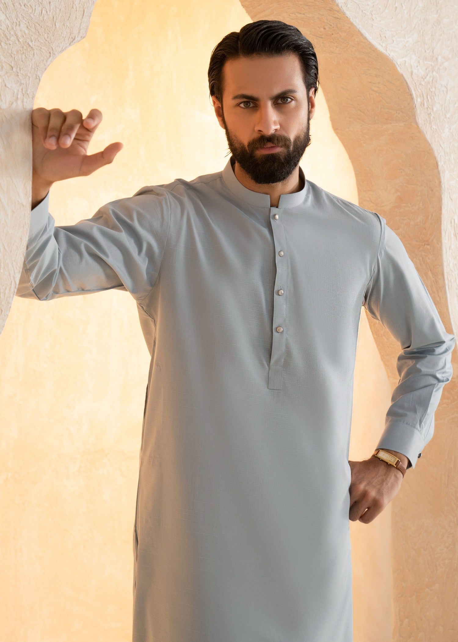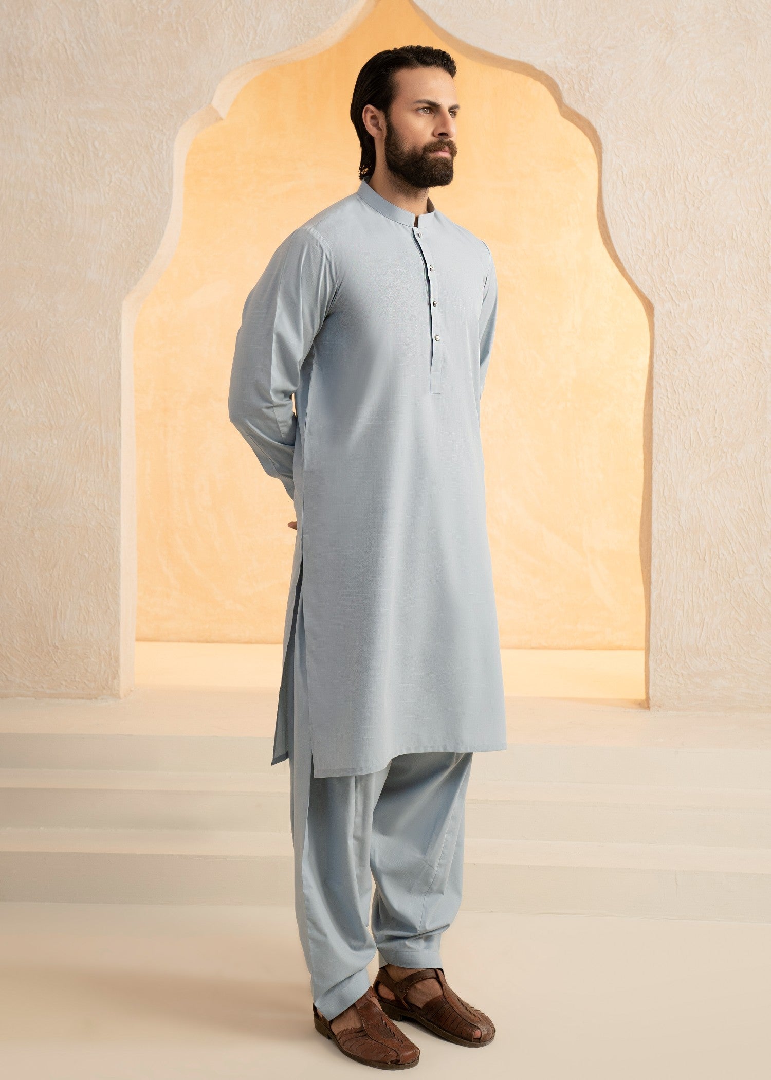 Additional Description:Â This Slub Textured Shalwar Kameez is perfect for men looking for Eastern Wear. The blended fabric offers a unique and comfortable texture, while the light blue color adds a touch of sophistication. Stay stylish and comfortable in this classic update to traditional attire.nnnn