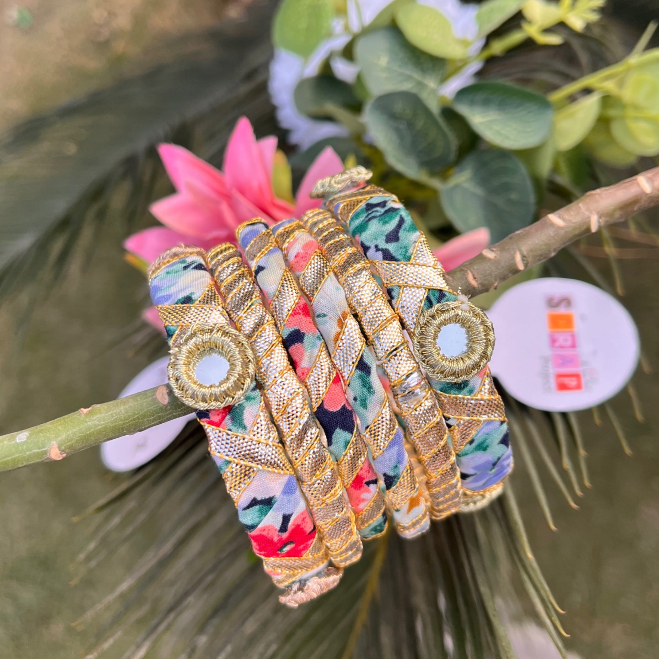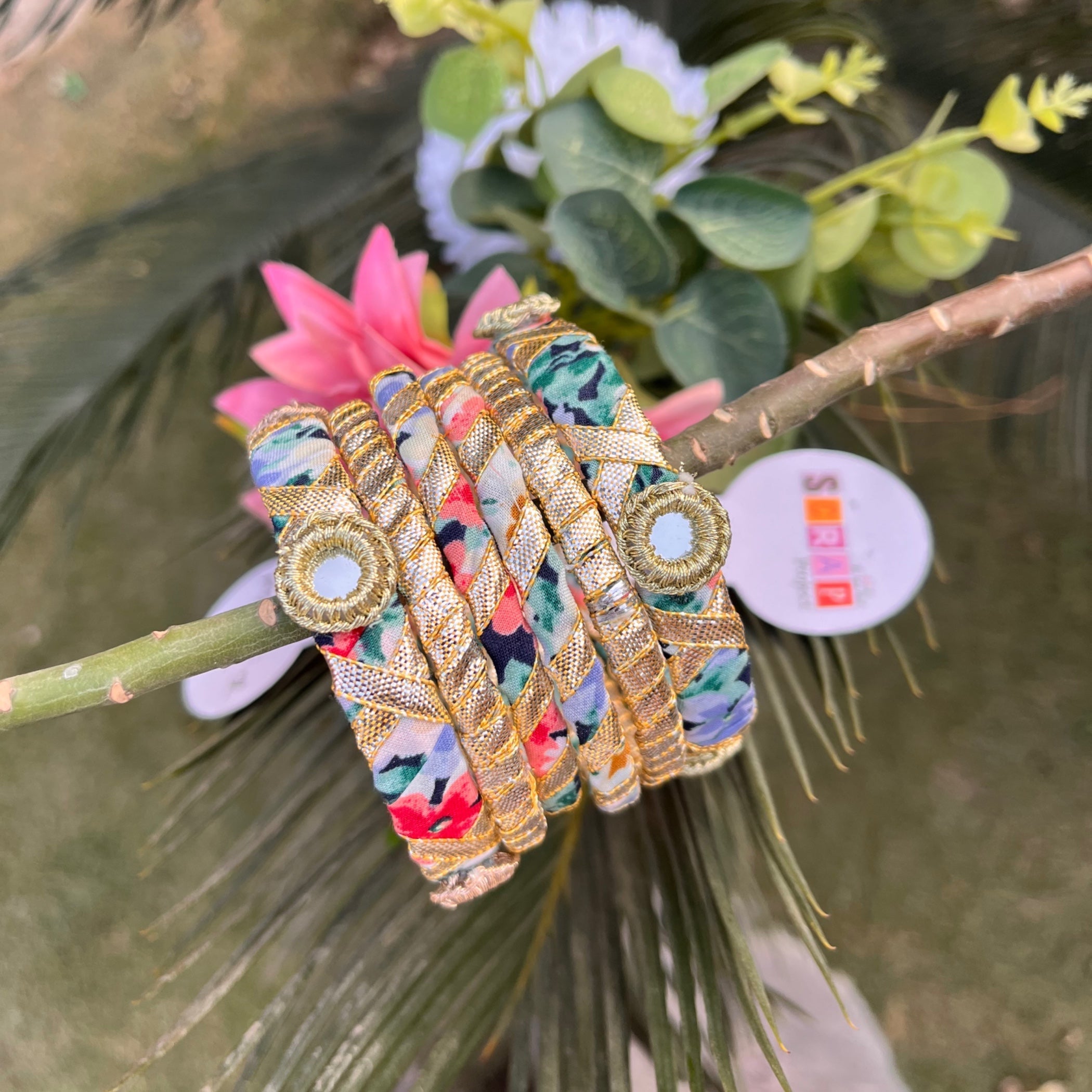 Additional Description: Gotta bangles sets is available from new born till mommy size. With 2 karas 4 bangles with beautiful handcrafted mirrors and gotta tilla work. Beautifully handcrafted on metal bangles wrappwd with clothes and tillannProducts are available in bulk quantity. We can customize for every occasion like dholki , wedding celebrations or EidnAll sizes available from newborn till large sizenn•0-3m till 3-6mnDiameter 1.5inchesn•9-12m till 3 years nDiameter 1.7 inches n•4 till 7years nDiameter 1.9 inches n•8 till 12 years nDiameter 2.1 inchesn• Small nDiameter 2.3 inches n•Medium nDiameter 2.4 inches n•Large nDiameter 2.6inchesnnBangle sets under 3 years has gotta flower attached tather sheesha.nn