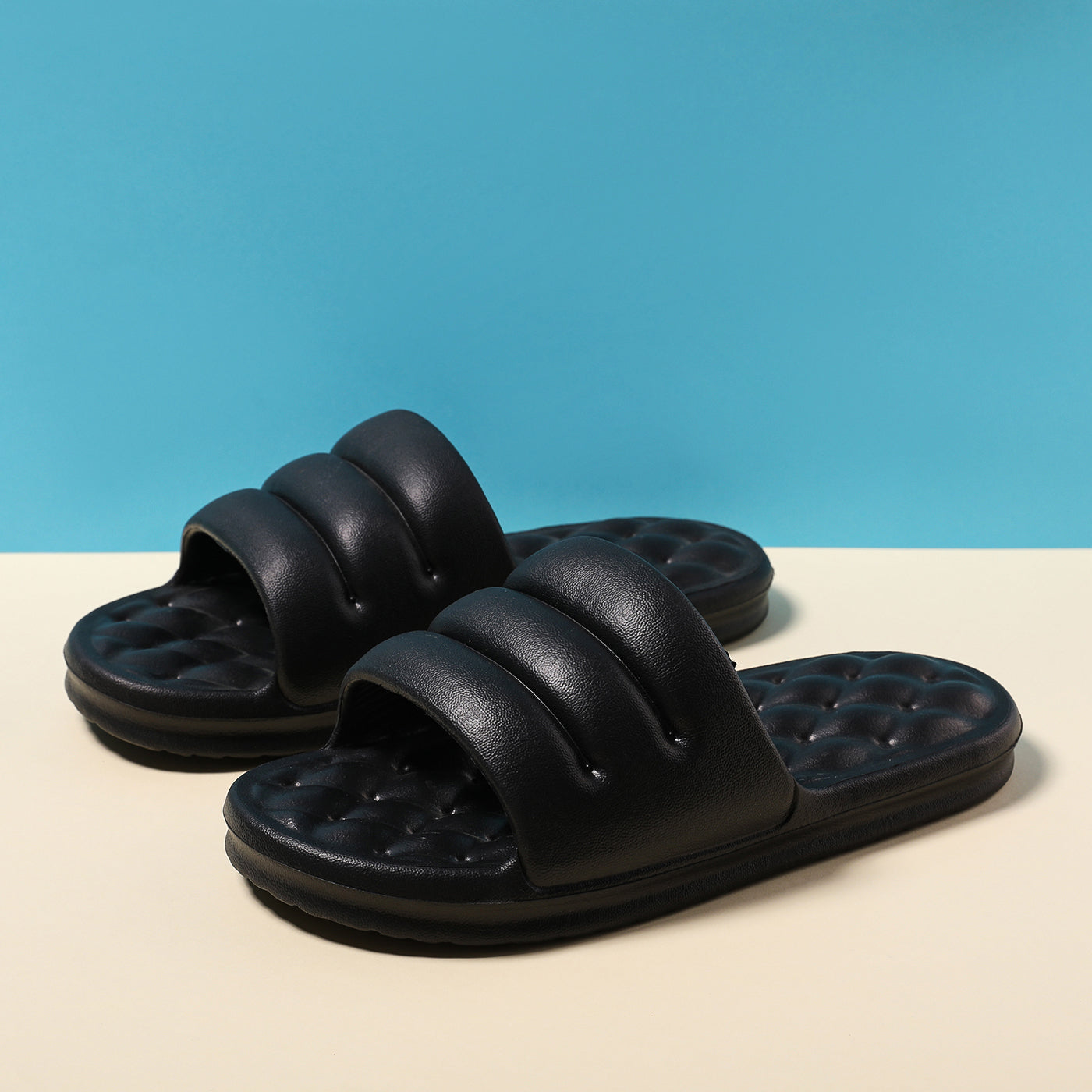 Experience comfort and style with our Mute EVA Sofa Slides! Perfect for indoor use, these slippers/sandals feature a thick, anti-slip sole and a summer platform design. Available in US sizes 4-9, order one size up as it runs small.nKey Fe: tures:n Suitable Characteristics: Thick sole, anti-slip, summer platform, indoorn Size: US 4-9 (order one size up)n Source of Good: Imported