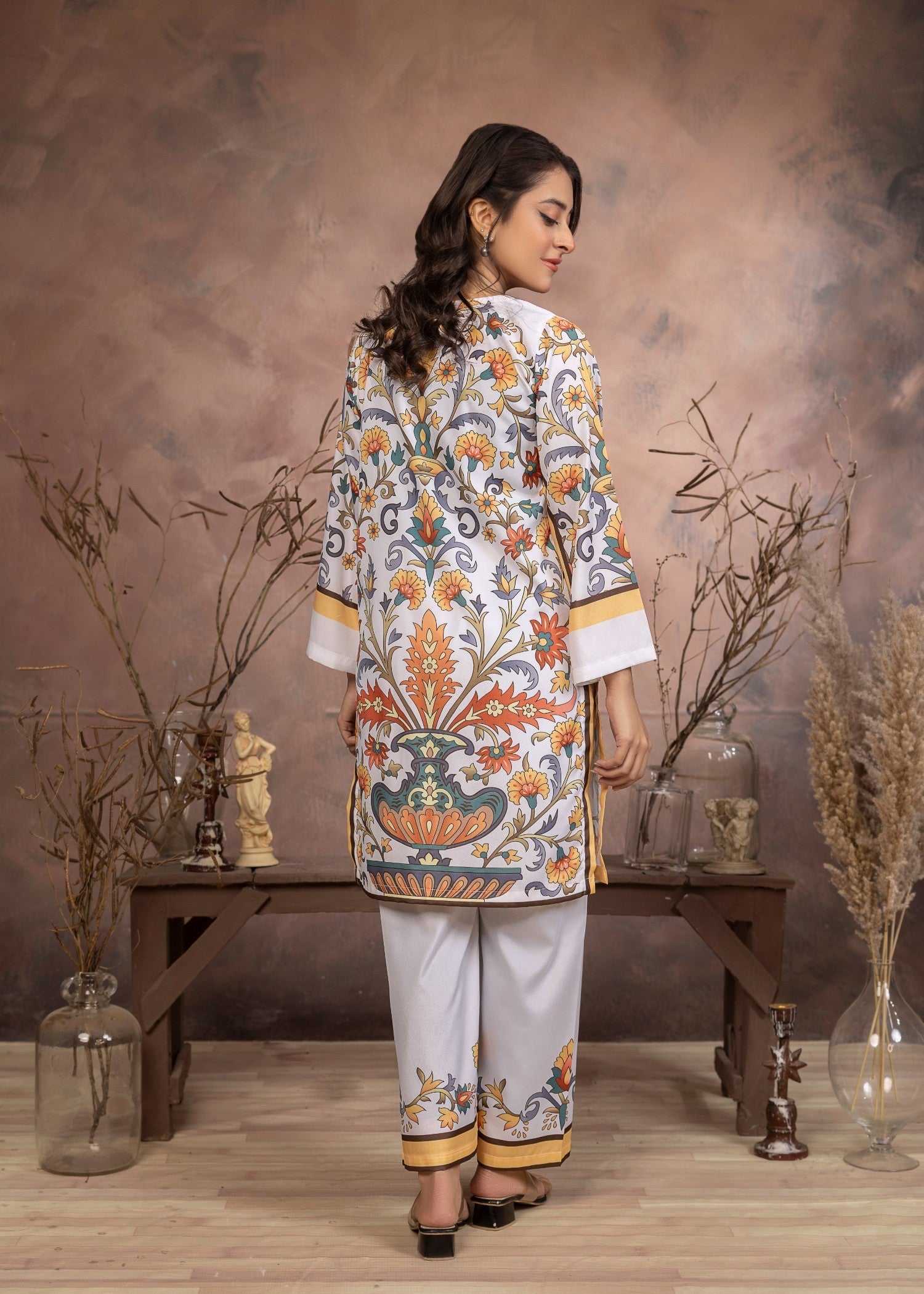 Gender:Â Womenn Category:Â Clothingn Outfit Type:Â Eastern Ready to wearn Sub-Category:Â Co Ord Setsn Bottom Style:Â Straight Trousern Color Type:Â Whiten Lining Attached:Â No Liningn Number of