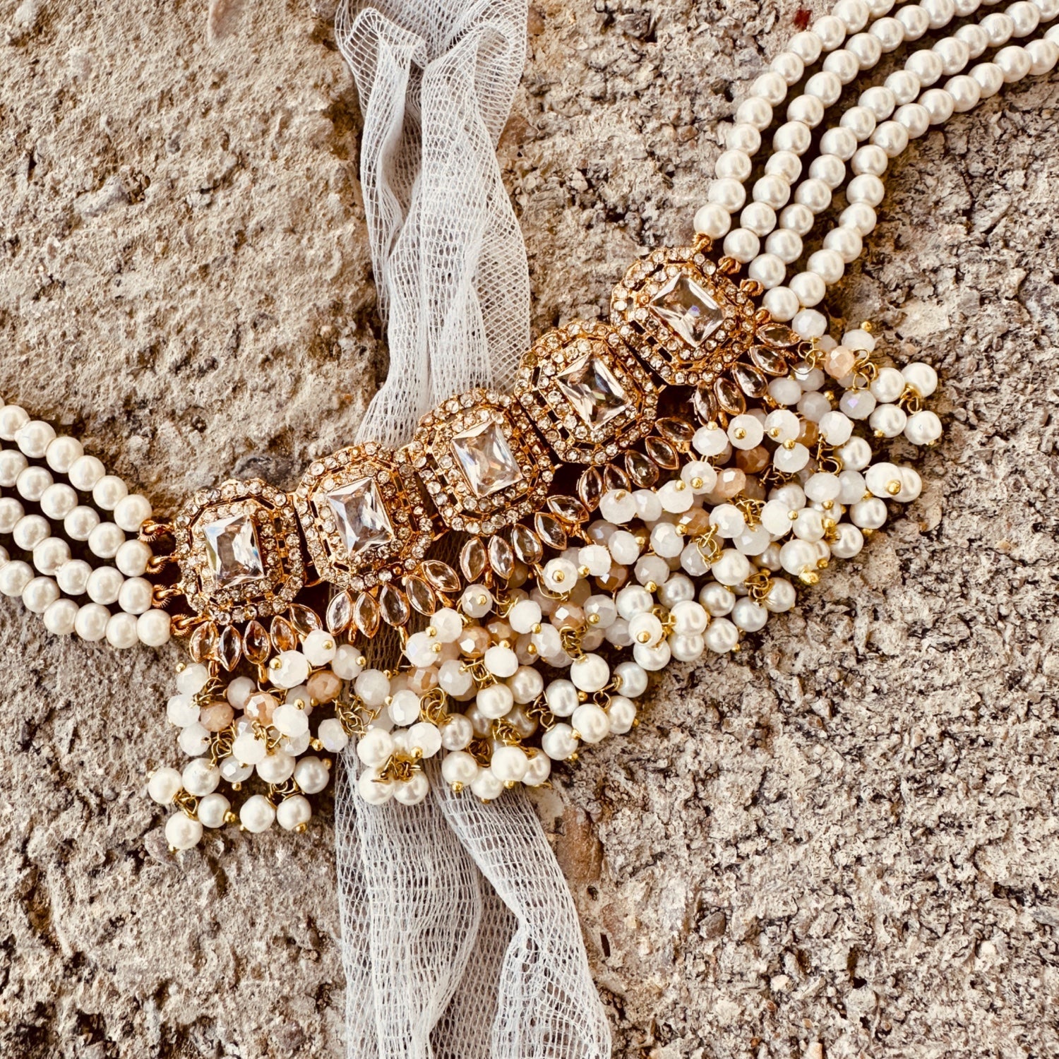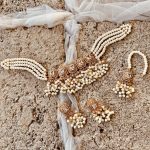 Additional Description: Inspired by the grandeur of Mughal artistry, the Naqsh-e-Jahan Choker is a stunning blend of heritage and elegance. Intricately designed with exquisite craftsmanship and radiant embellishments, this statement piece gracefully adorns the neckline. Paired with matching earrings and Tikka, it’s perfect for weddings, festive celebrations, and grand soirées. A true symbol of timeless luxury and regal charm.n