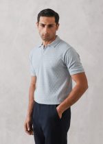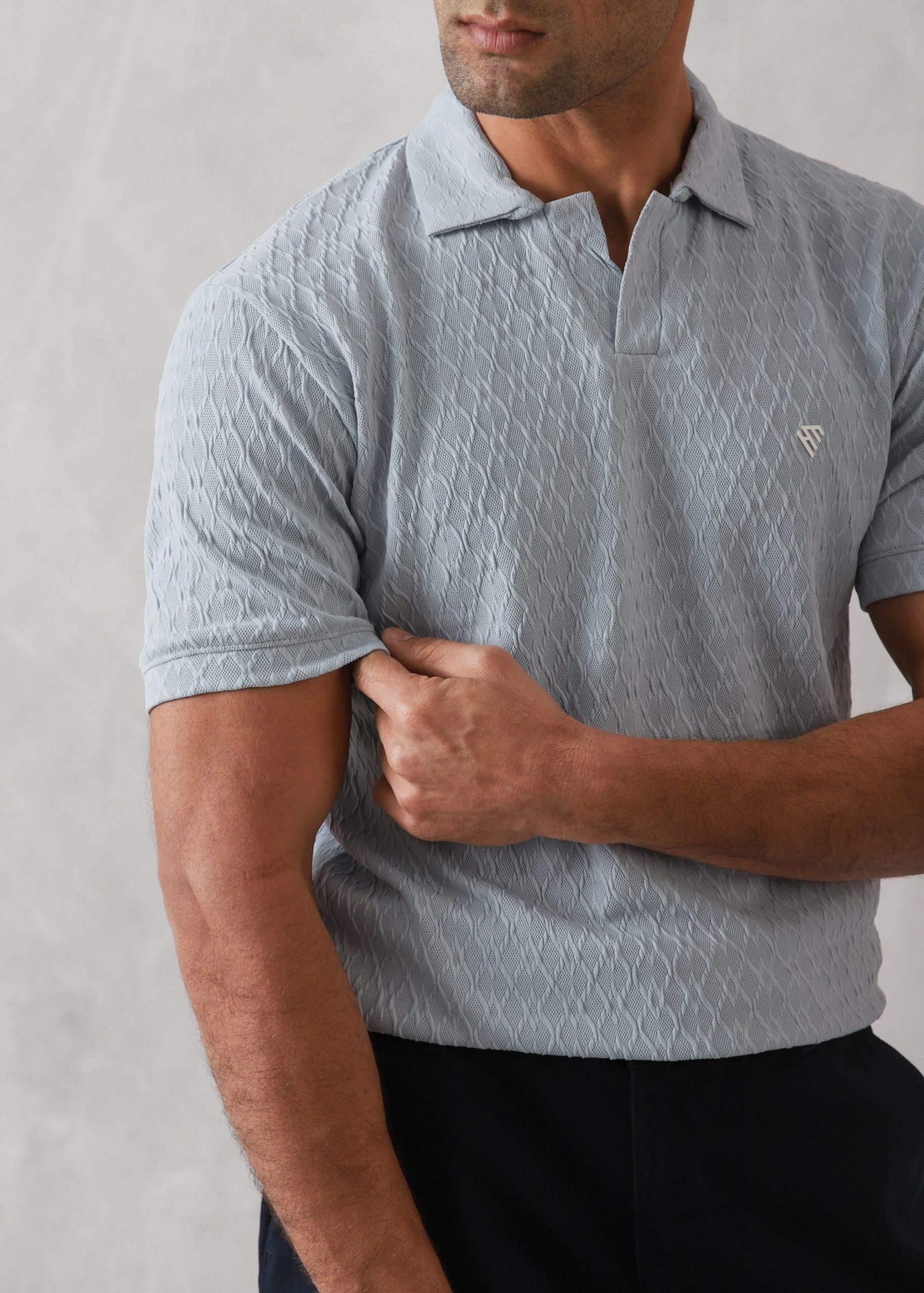 OLD MONEY ICE BLUE TEXTURED V NECK POLO
