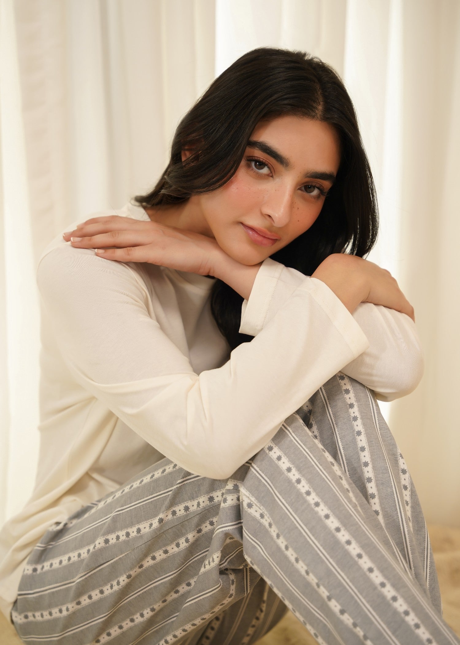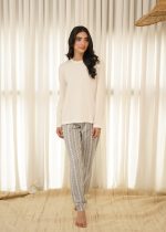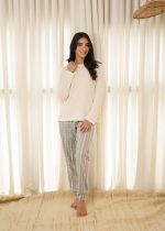 Additional Description:Â Olivia- unwind in comfort with this oro solid top. This pjs set features full sleeves t-shirt paired with stars and striped printed grey pajamas. Olivia pjs set is perfect for lounging in and peaceful sleep.nnn