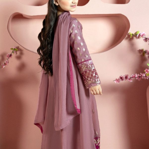 Gender:Â Girln Category:Â Clothingn Outfit Type:Â Easternn Sub-Category:Â Ghararan Bottom Style:Â Ghararan Color Type:Â Pinkn Dupatta Fabrics:Â Silkn Number of Pieces:Â 3 Piece – Top + Bottom +