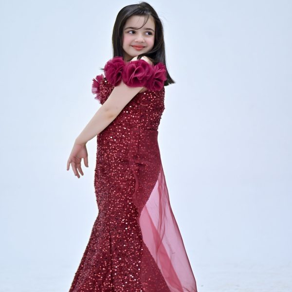 Gender:Â Girln Category:Â Clothingn Outfit Type:Â Westernn Sub-Category:Â Dressn Color Type:Â Maroonn Fabric:Â Viscose Raw Silkn Number of Pieces:Â 1 Piecen Season:Â All Seasonn Additional Description:Â Please Refer to