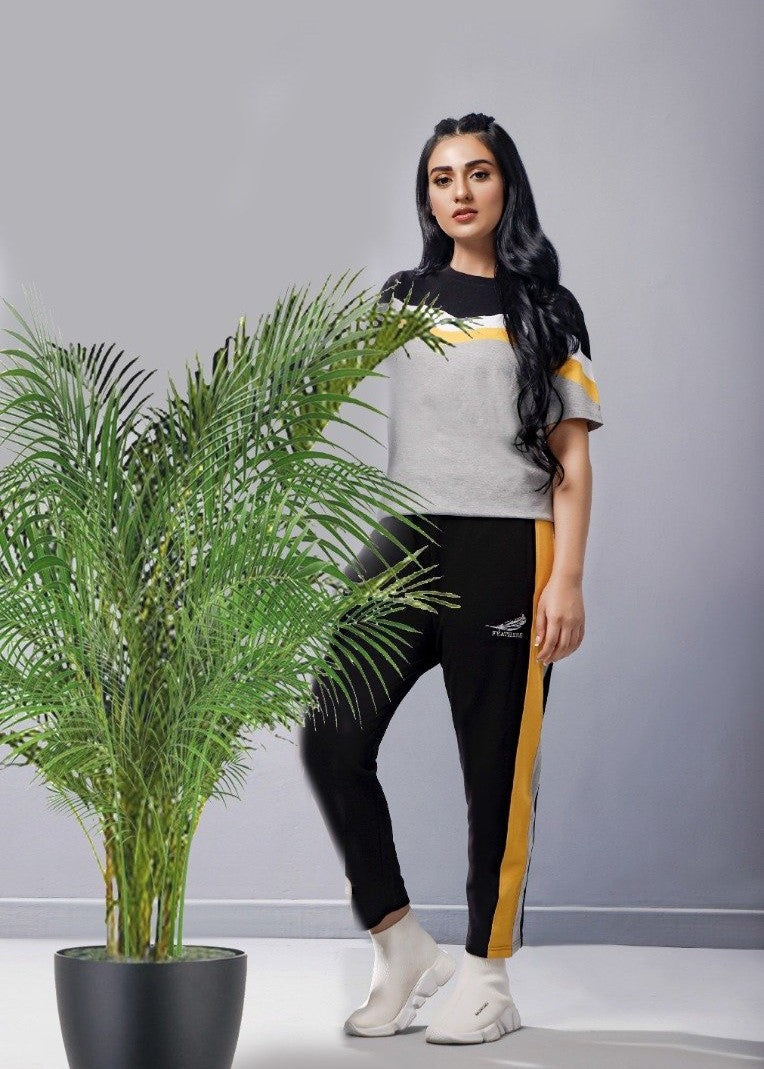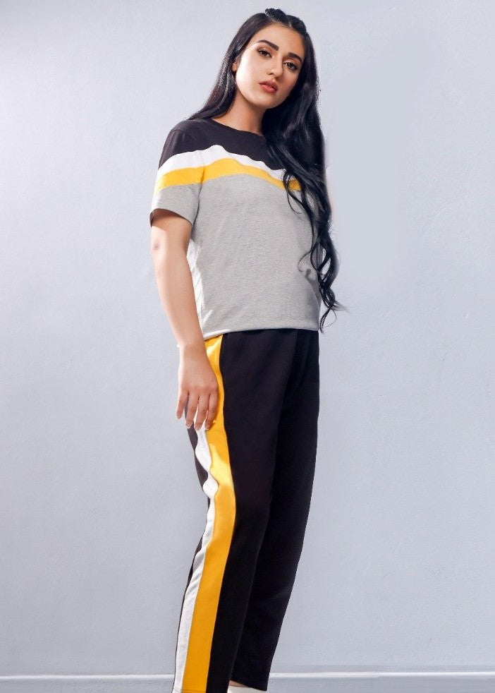 Additional Description:Â Keeping up with the winter trend, Feathers has come up yet again to knock your hearts & doors. Mesmerizing prints & cuts with matchless comfort crafted on light stretchable summer fabric especially designed to soothe the seasonal warmth is what the collection is all about.nnOutfit: The article composes of white tees with printed yellowish butterflies. The yellow trouser pants is exclusively designed with complimented broad belt.nnFabric: Shirt is composed of 100% cotton while the trouser pant is cotton terry. The fabric is especially crafted sweat free for Asian summers.nnFeel the comfort you crave!nnPremium export quality.n