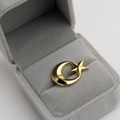 Additional Description:Â This Lapel Pin is a striking accessory crafted from high-quality metal. This elegant pin features a delicate crescent moon and star motif, symbolizing both celestial beauty and timeless style. Its polished finish adds a touch of sophistication to any attire, making it perfect for both formal and casual occasions. This lapel pin is not only a fashion statement but also a symbol of grace and elegance, ideal for those who appreciate fine craftsmanship and understated luxury.n