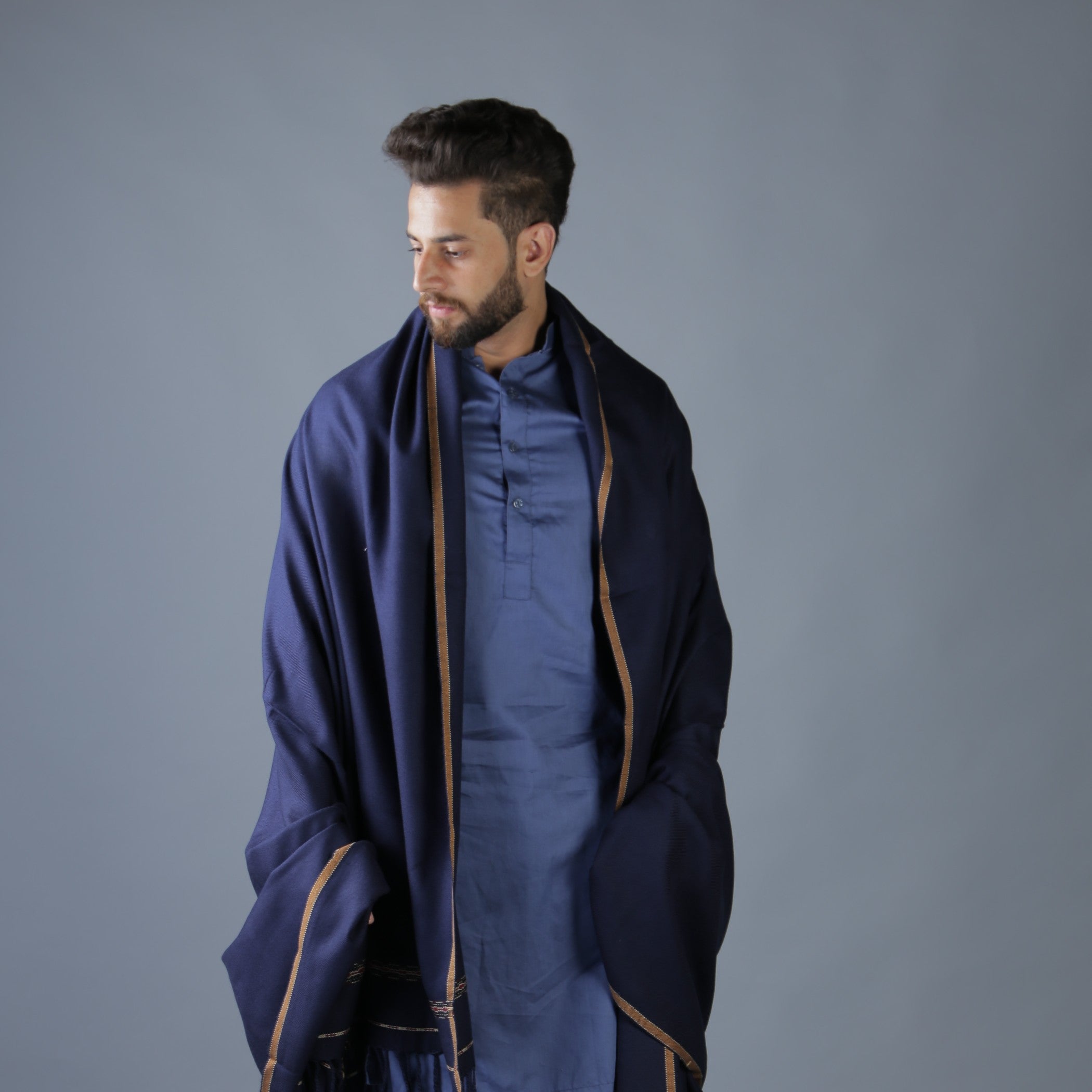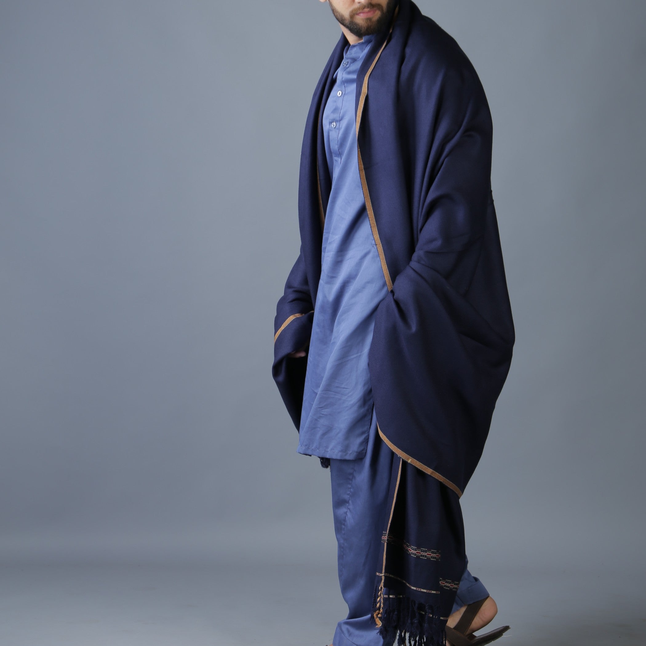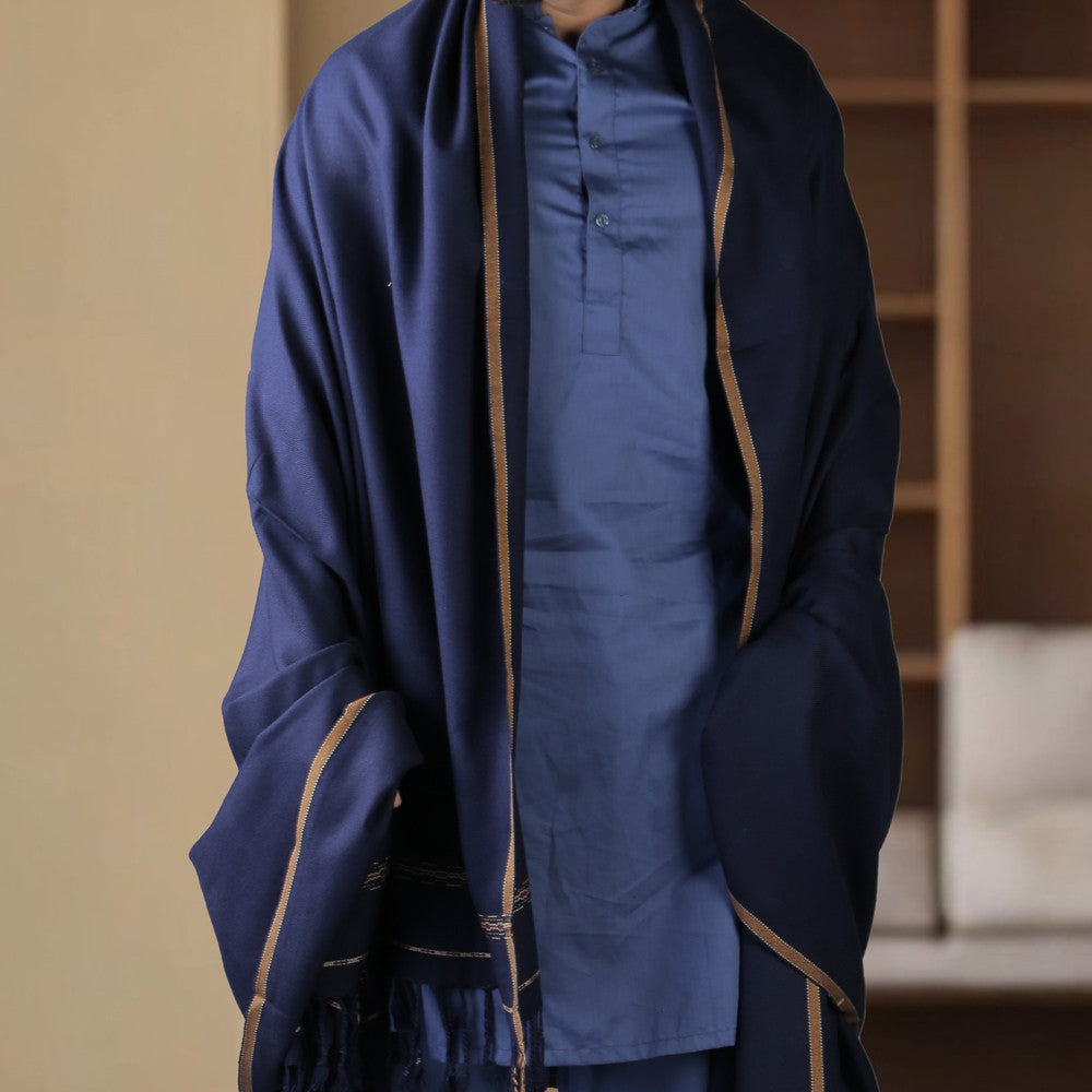 Additional Description:Â A timeless piece of Pushtoon heritage, this Navy Blue acrylic wool shawl offers warmth and elegance. Its jumbo size (54 x 100 inches) provides ample coverage, while the intricate tassel work on the borders and the distinctive Dhussa Patti design add a touch of cultural richness. Perfect for the winter season, this shawl is not just a garment but a symbol of tradition and style.nn