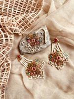Additional Description: A celebration of color and culture, the multi-toned Qalb choker set reflects the joy of mehndi and festive gatherings. It’s playful, bold, and made for the bride who owns every shade of her story.n