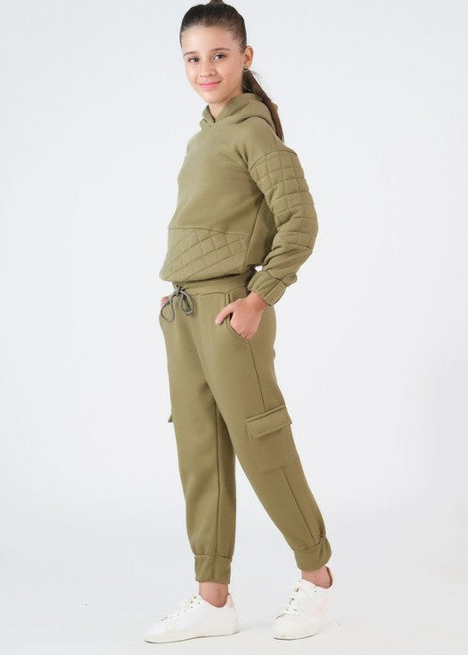 Quilted Panel Hoodie With Jogger Pants – Mint Green